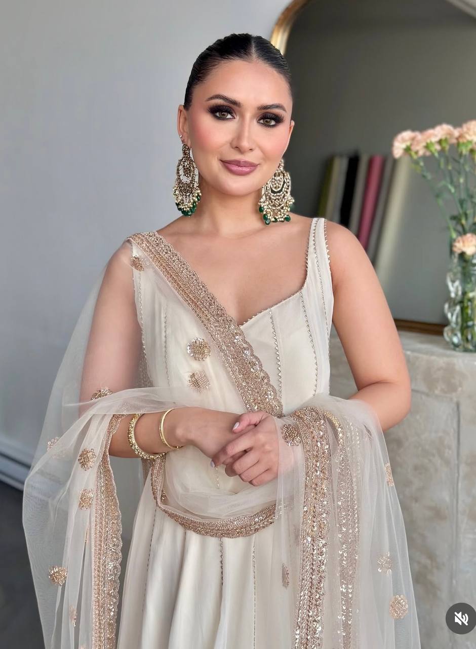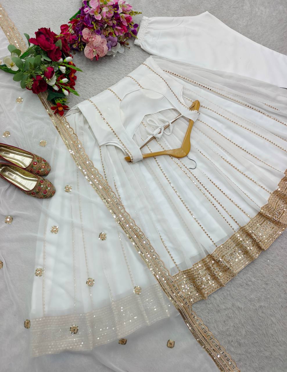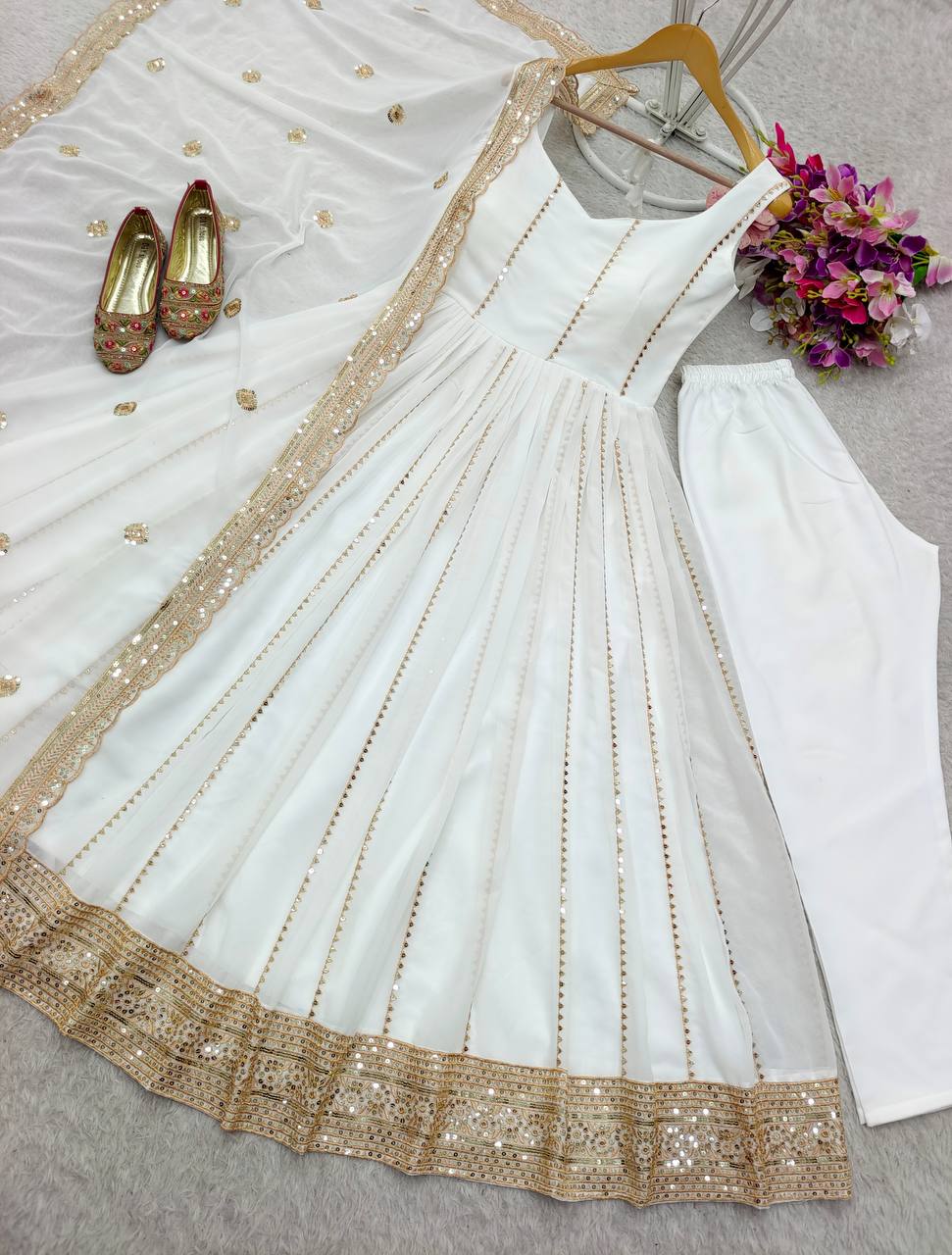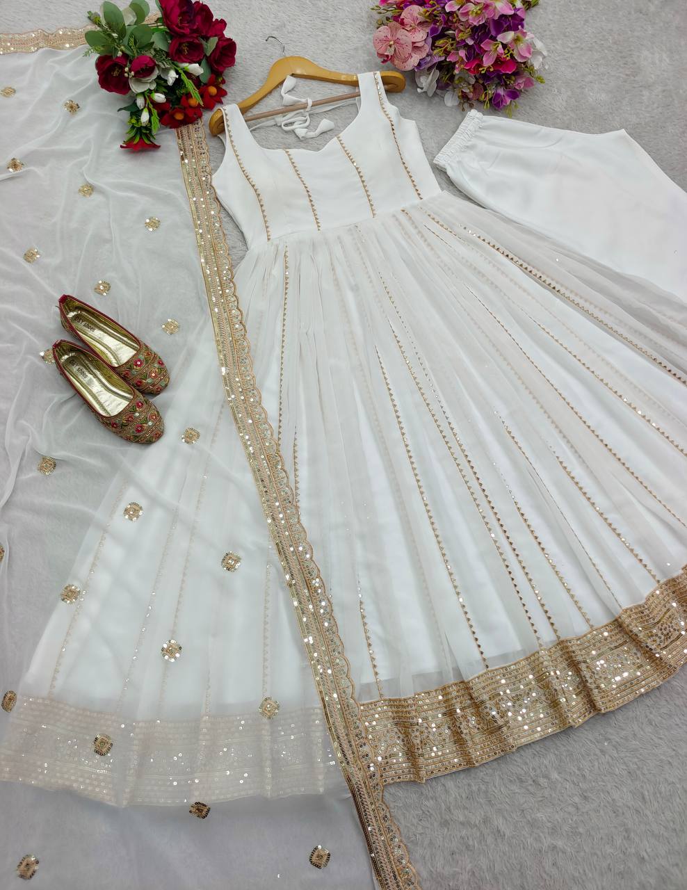 White Summer Radiance: Faux Georgette Embroidered Gown Set
