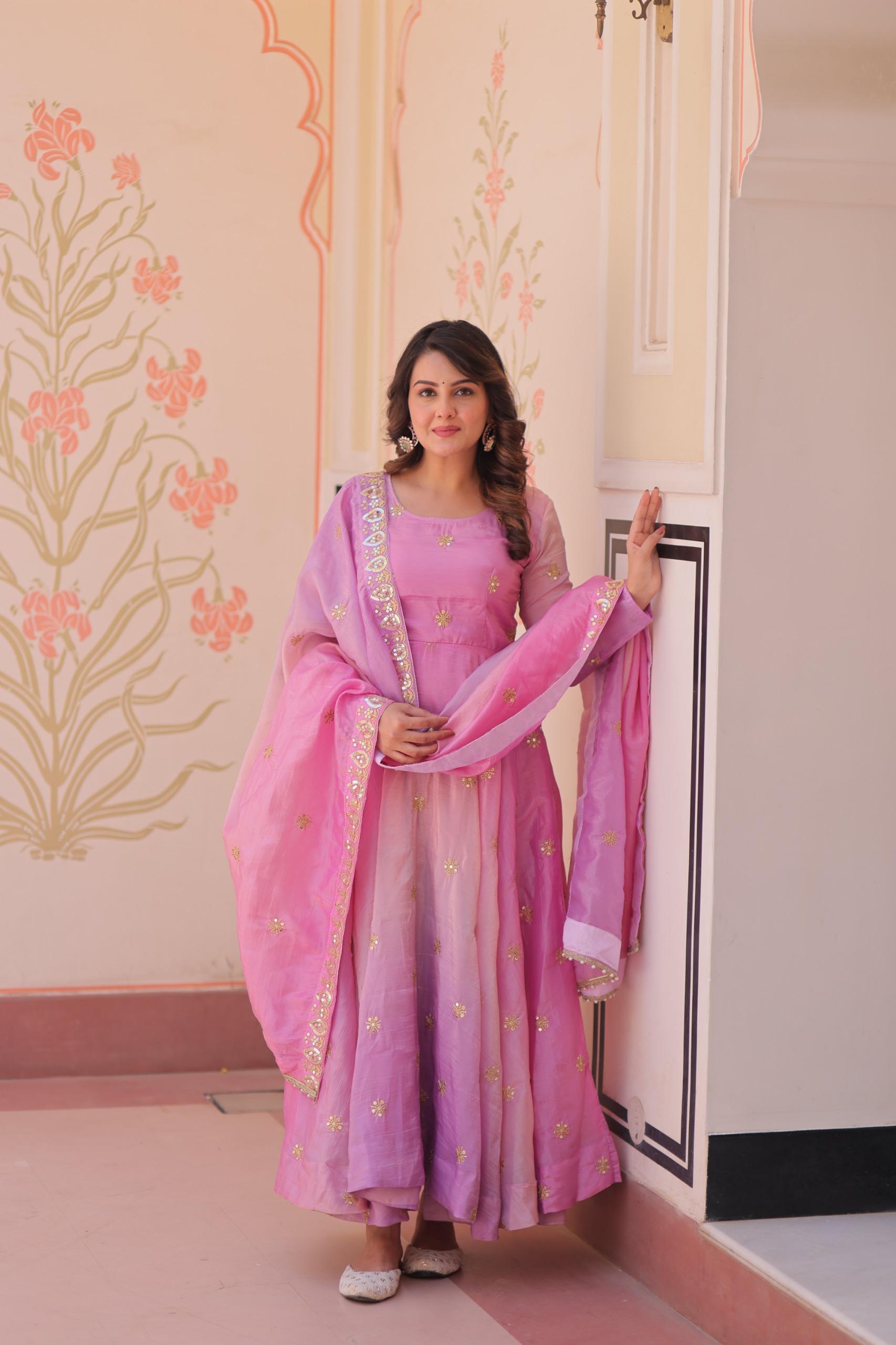 Wine Color Luxurious Plus Size Silk Party Gown with Dupatta (Up to 4XL/48) - Readymade