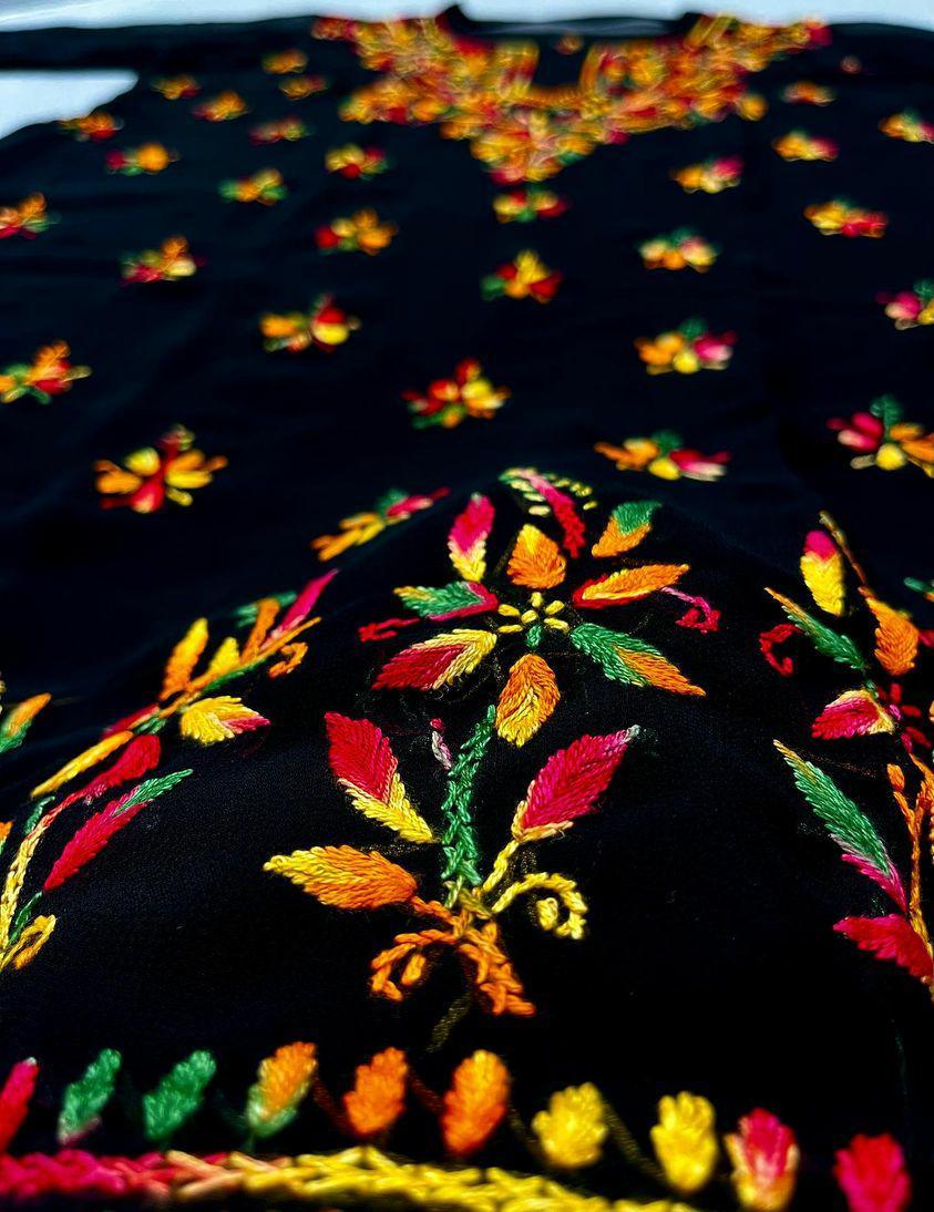 Handcrafted with intricate Chikankari, each piece tells a story of artistry and tradition. The beautiful blend of colors adds a vibrant touch to the black canvas, creating a captivating visual symphony. The Chikankari work reflects the skilled craftsmanship and attention to detail, making this long kurti a true work of wearable art.