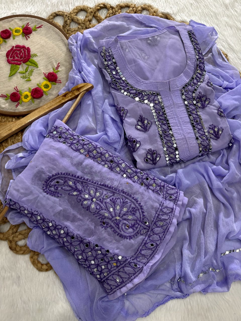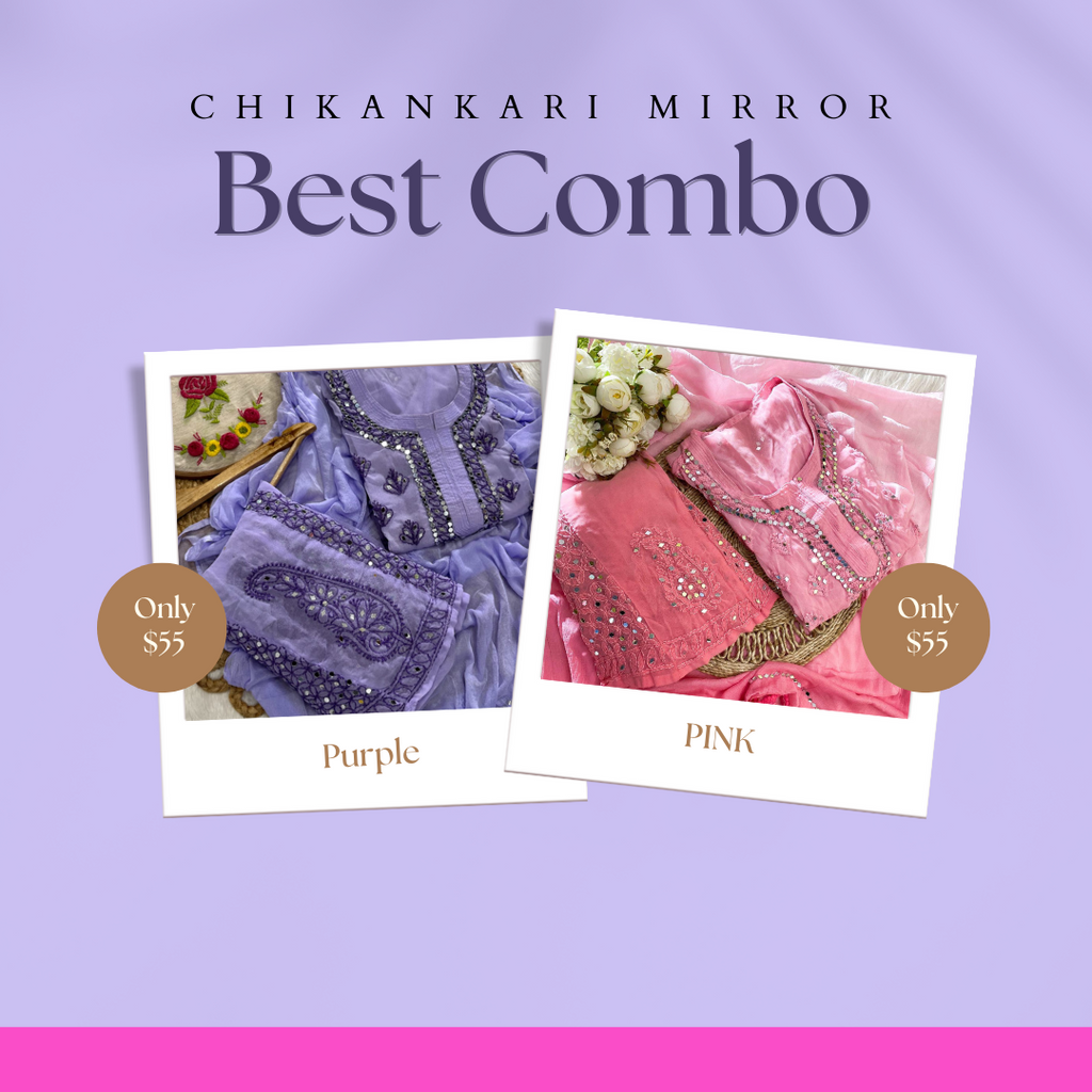 Best Value Combo Chikankari Elegance Ombré Mirror Set ( Purple / Pink)