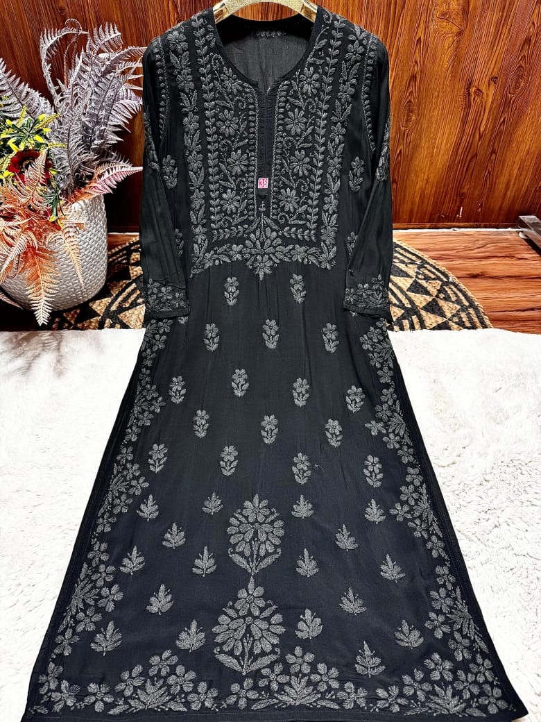 Black Exquisite 3D Handwork Modal Lucknow Chikankari Kurta Set