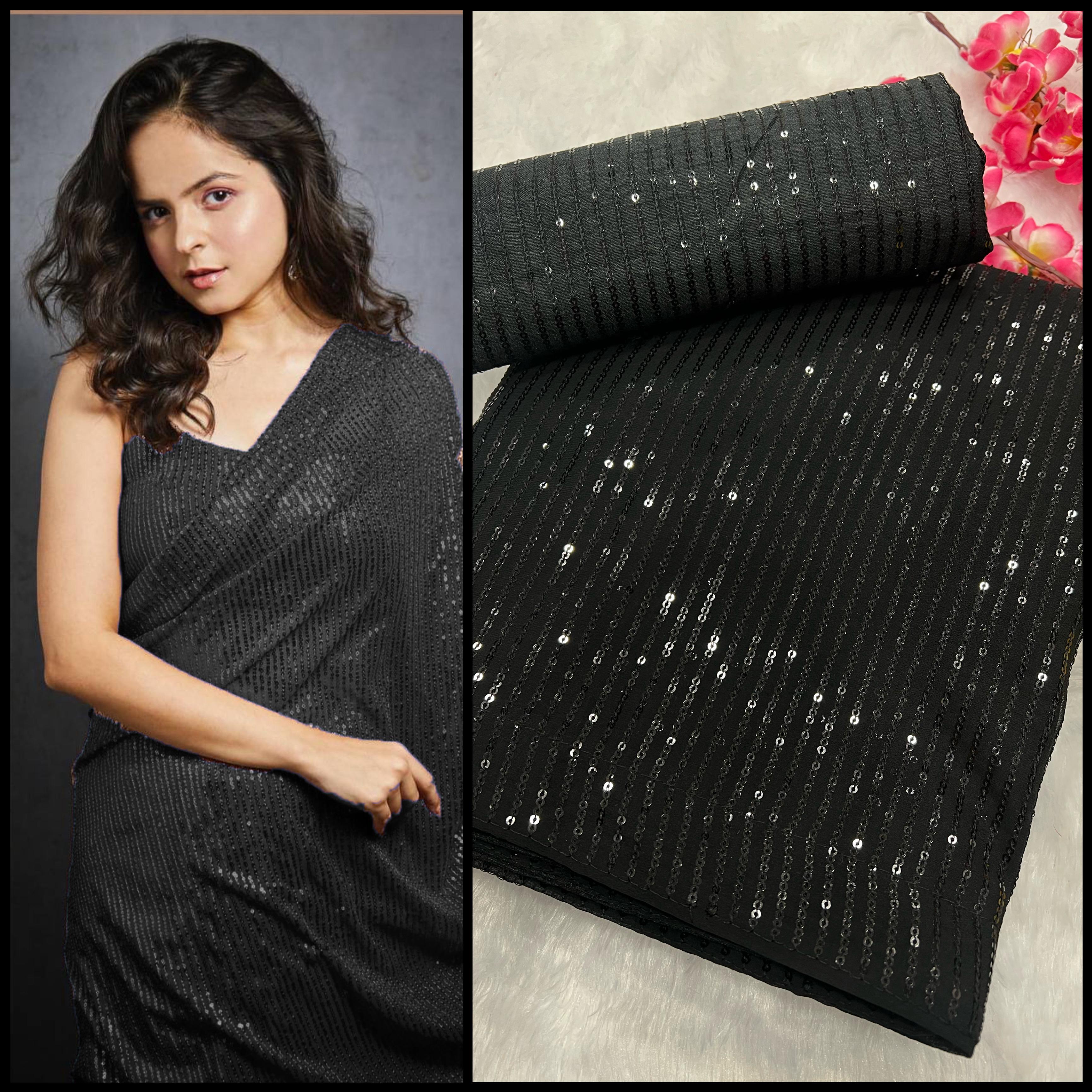 Black Georgette Sequin Work Saree with Banglori Silk Blouse