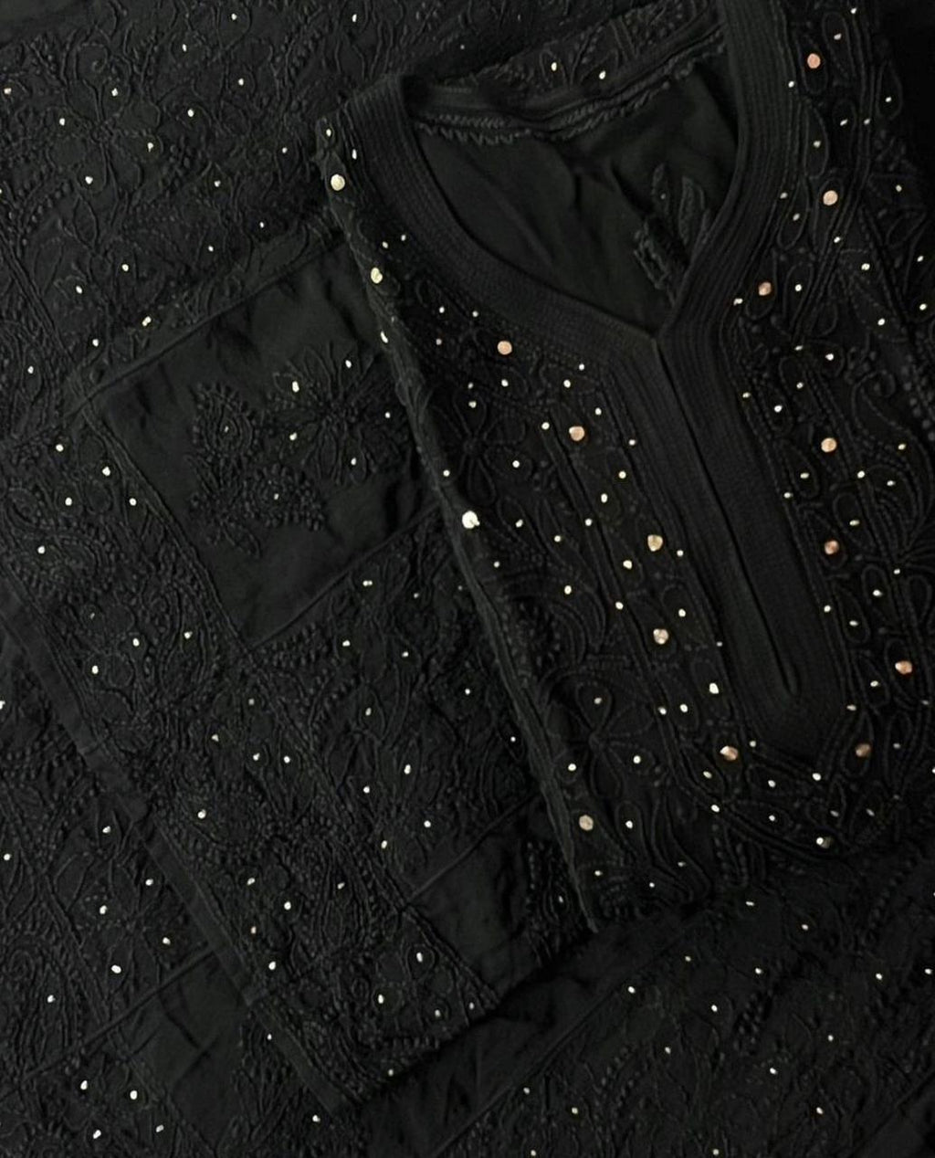 Black Luxe Chikankari Bliss: Premium Viscose Set with Sharara