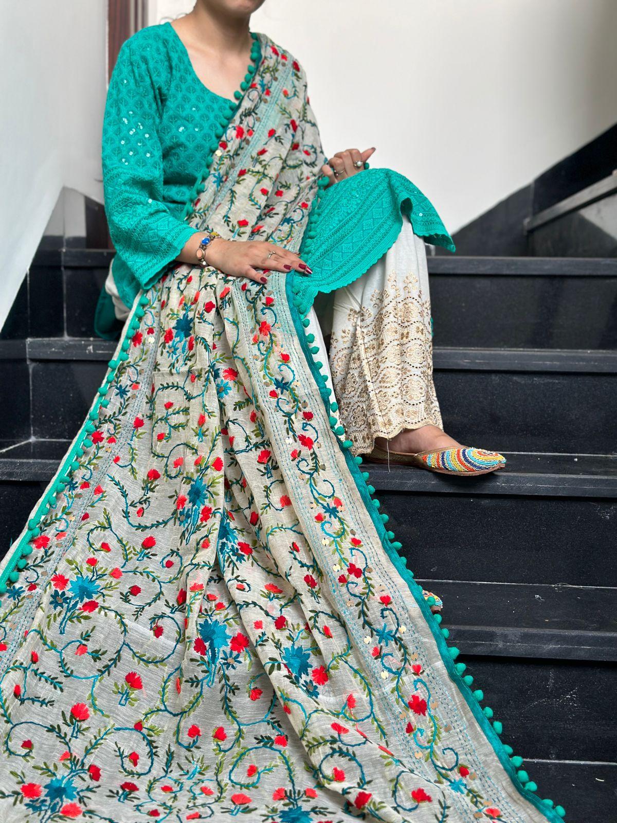 Wrap yourself in sophistication and elevate your style with the Pom Pom Panache Kurti Dupatta Set, perfect for any occasion.