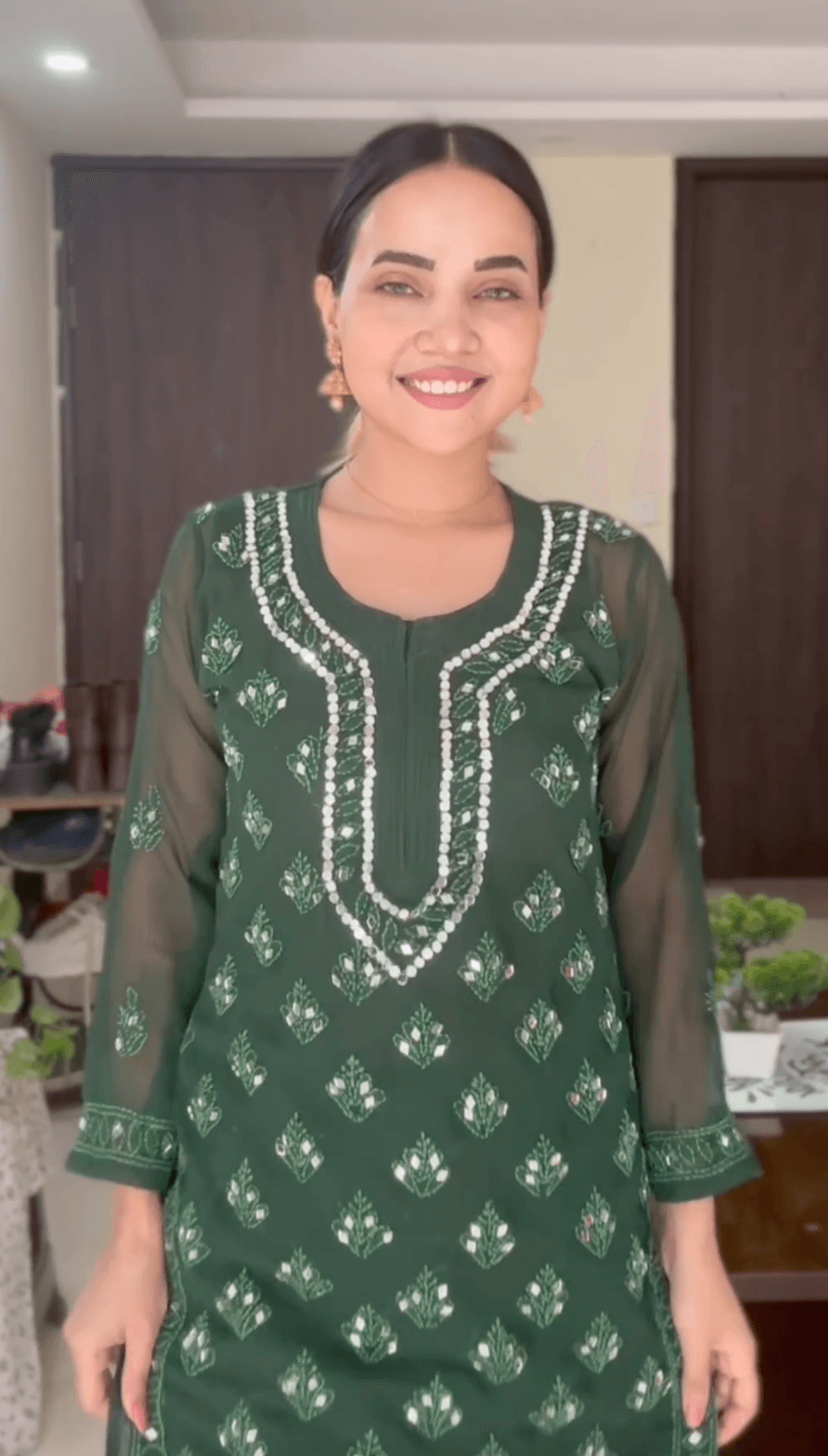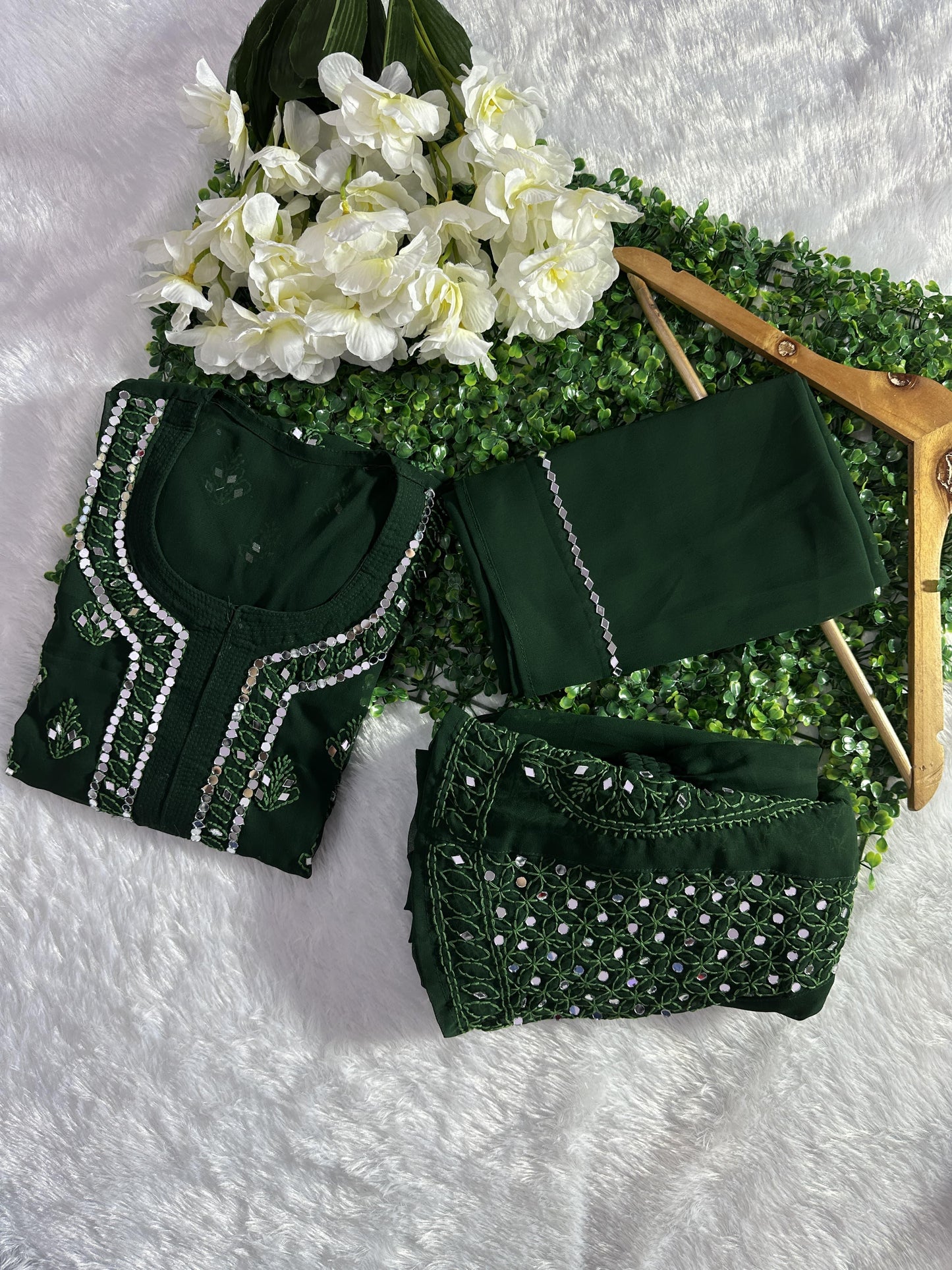 Dark green Best Seller Georgette Mirror Gala Booti Chikankari Set with Beautiful Handwork Embroidery