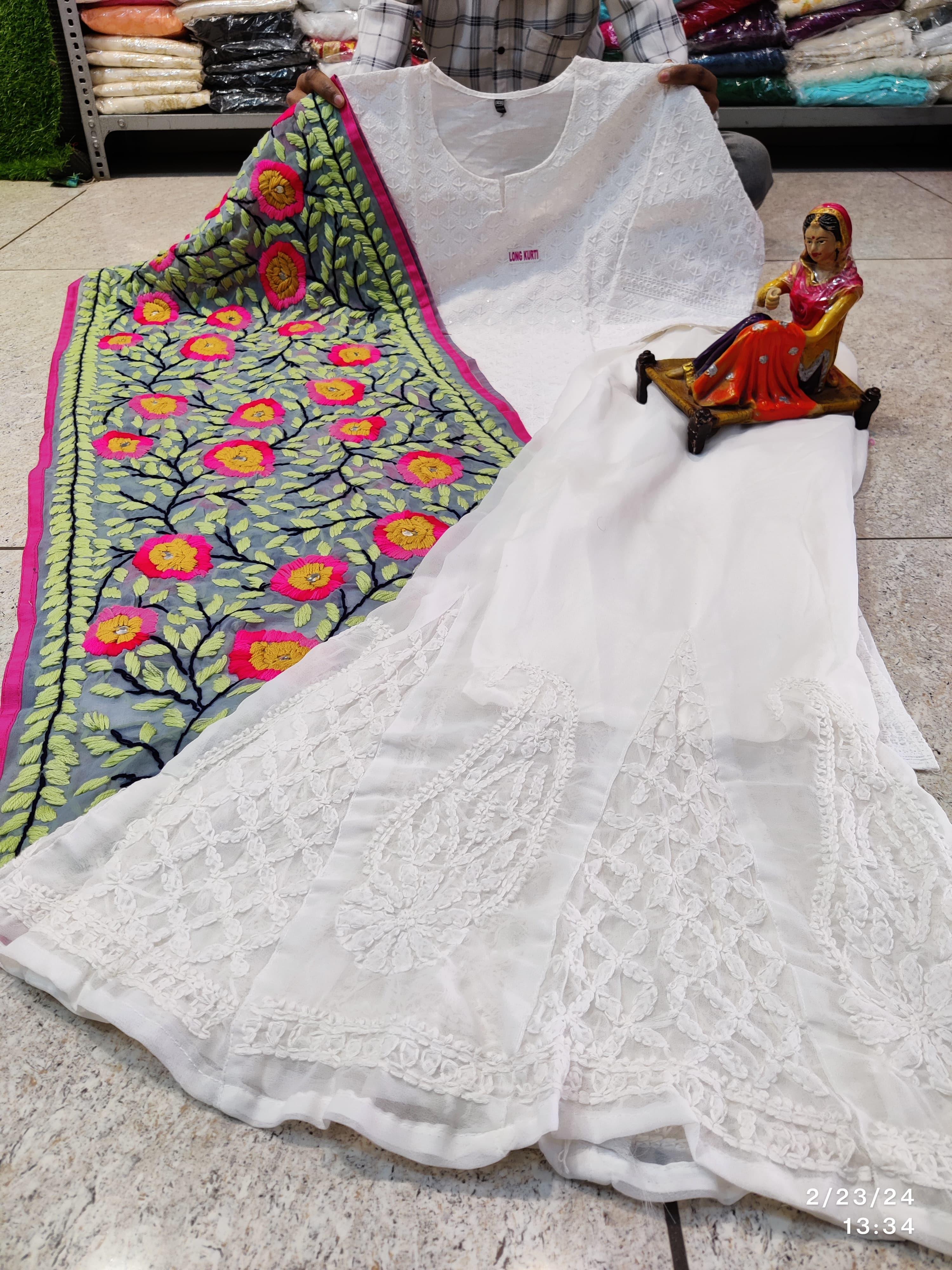 Elevate your ethnic wardrobe with this enchanting set, perfect for weddings, parties, and special events. Embrace the beauty of Chikan embroidery and Lucknawi mirror work, and make a statement with our Enchanting Kurti and Sharara Set paired with a Matching Dupatta. 🌺🌼☘️