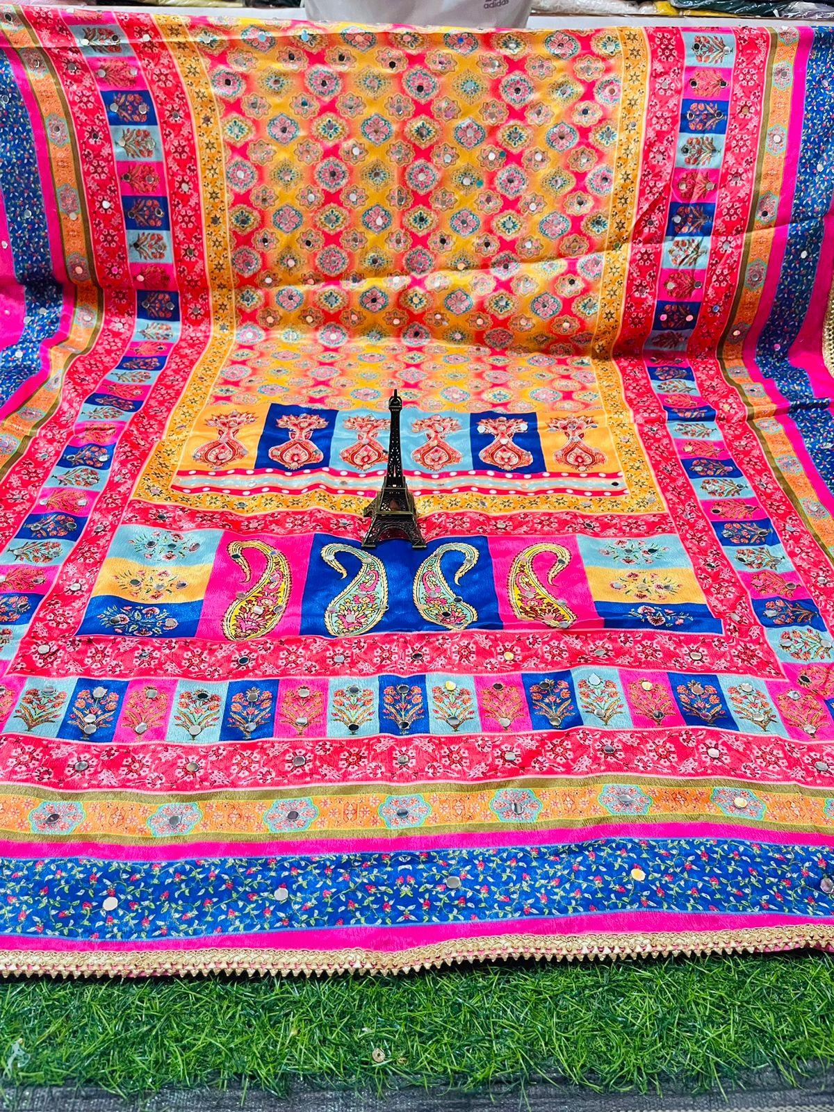 Introducing our exquisite multicolor pure chiffon Pakistani dupatta that will add elegance and charm to your wardrobe. The dupatta features exclusive handwork embroidery, showcasing intricate designs and patterns in vibrant colors that will make you stand out in the crowd.