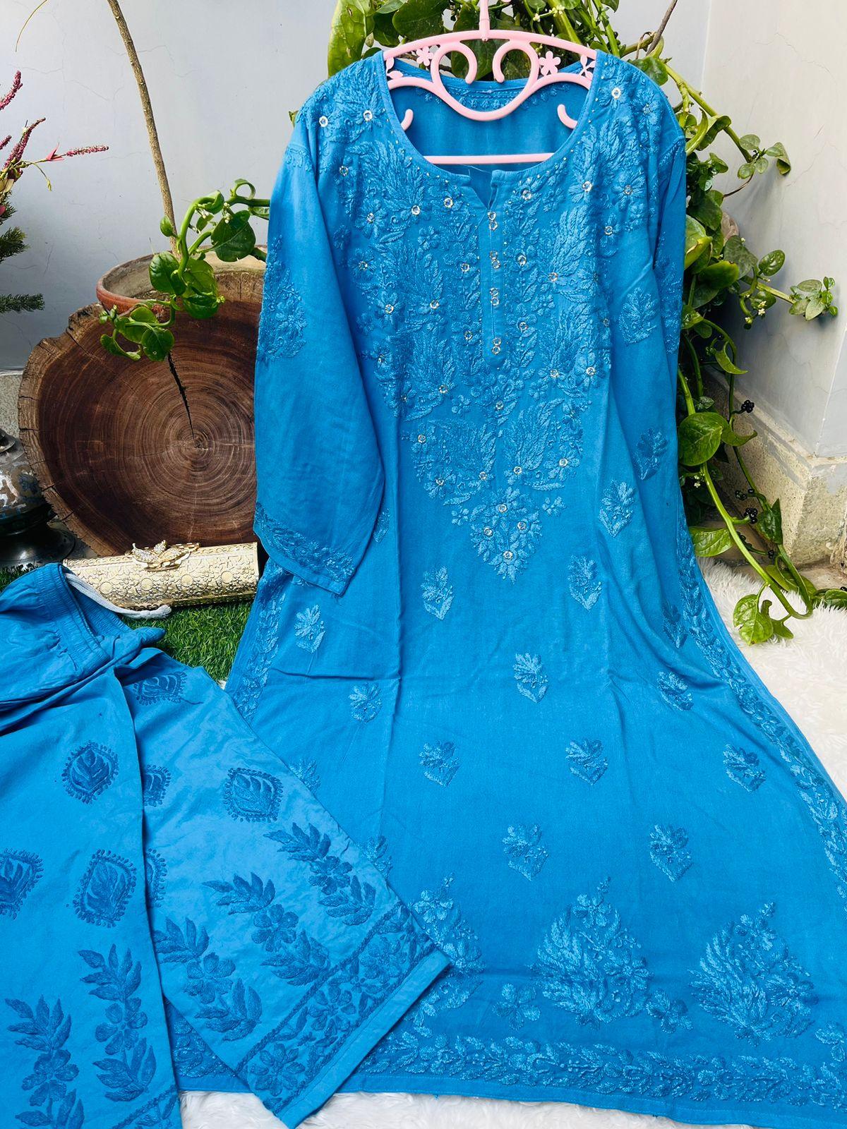 Electric Blue Opulent Rayon Set with Ring Mukesh Work Upto 5XL Plus size
