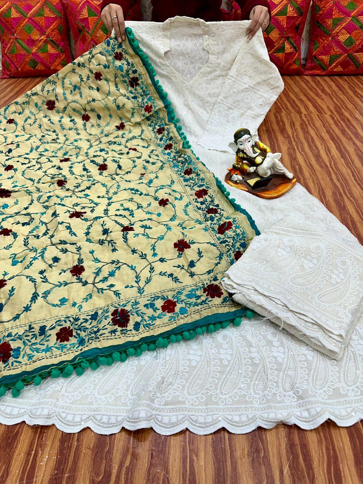 Ethereal Elegance - 1 : Sequined White Chikankari Cutwork Anarkali with phulkari Dupatta