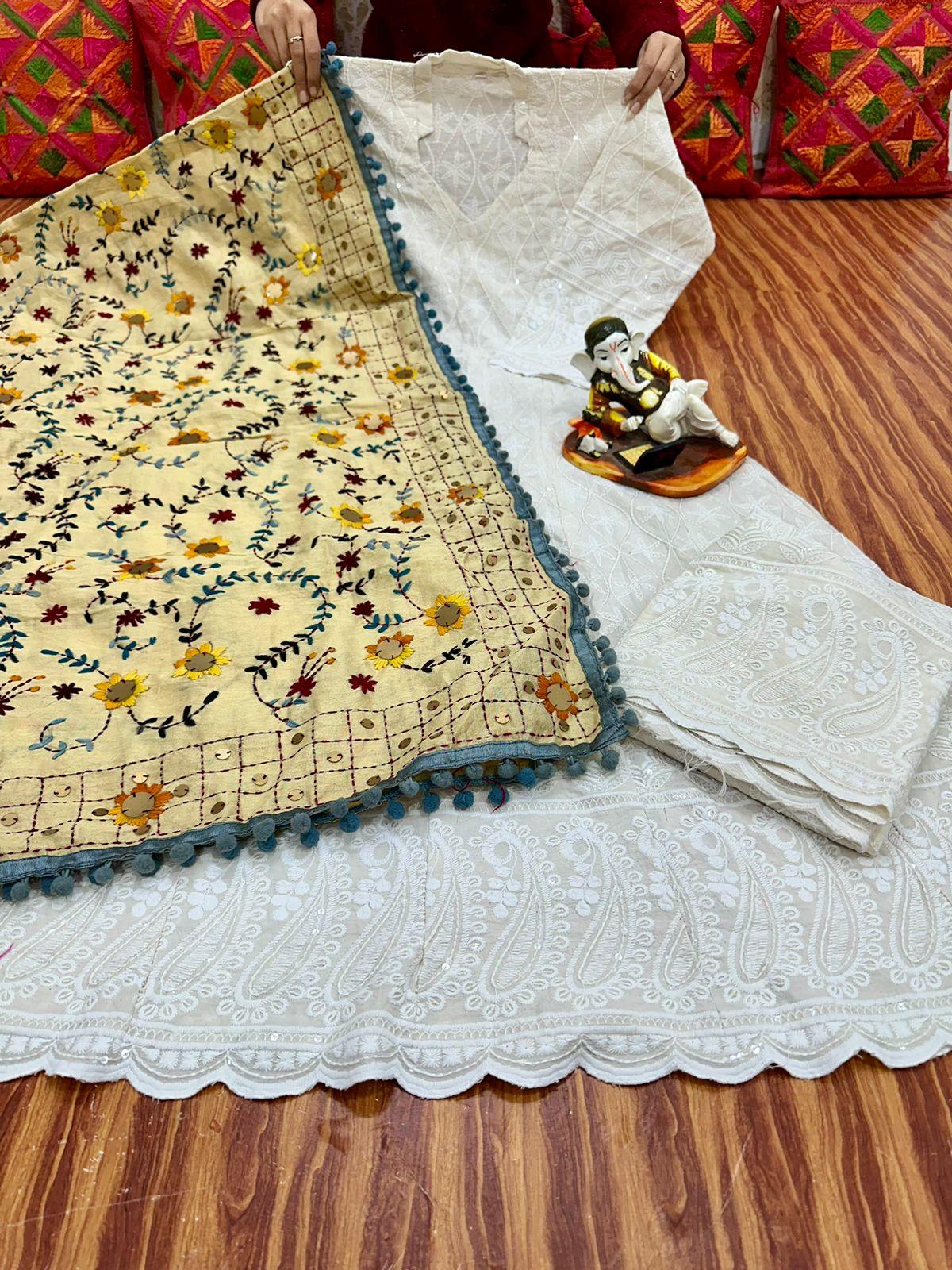 Ethereal Elegance - 5 : Sequined White Chikankari Cutwork Anarkali with phulkari Dupatta