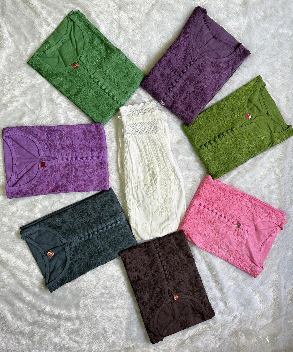 Discover a symphony of tradition and contemporary flair with our "Modern Mirage Cotton Kurti & Afghani Ensemble." Designed for the fashion-forward, this ensemble features an elegant slub dye cotton kurti, available in a captivating spectrum of colors. Each piece is a canvas of artistry, showcasing meticulous hand embroidery that reflects the rich legacy of Chikankari craftsmanship.