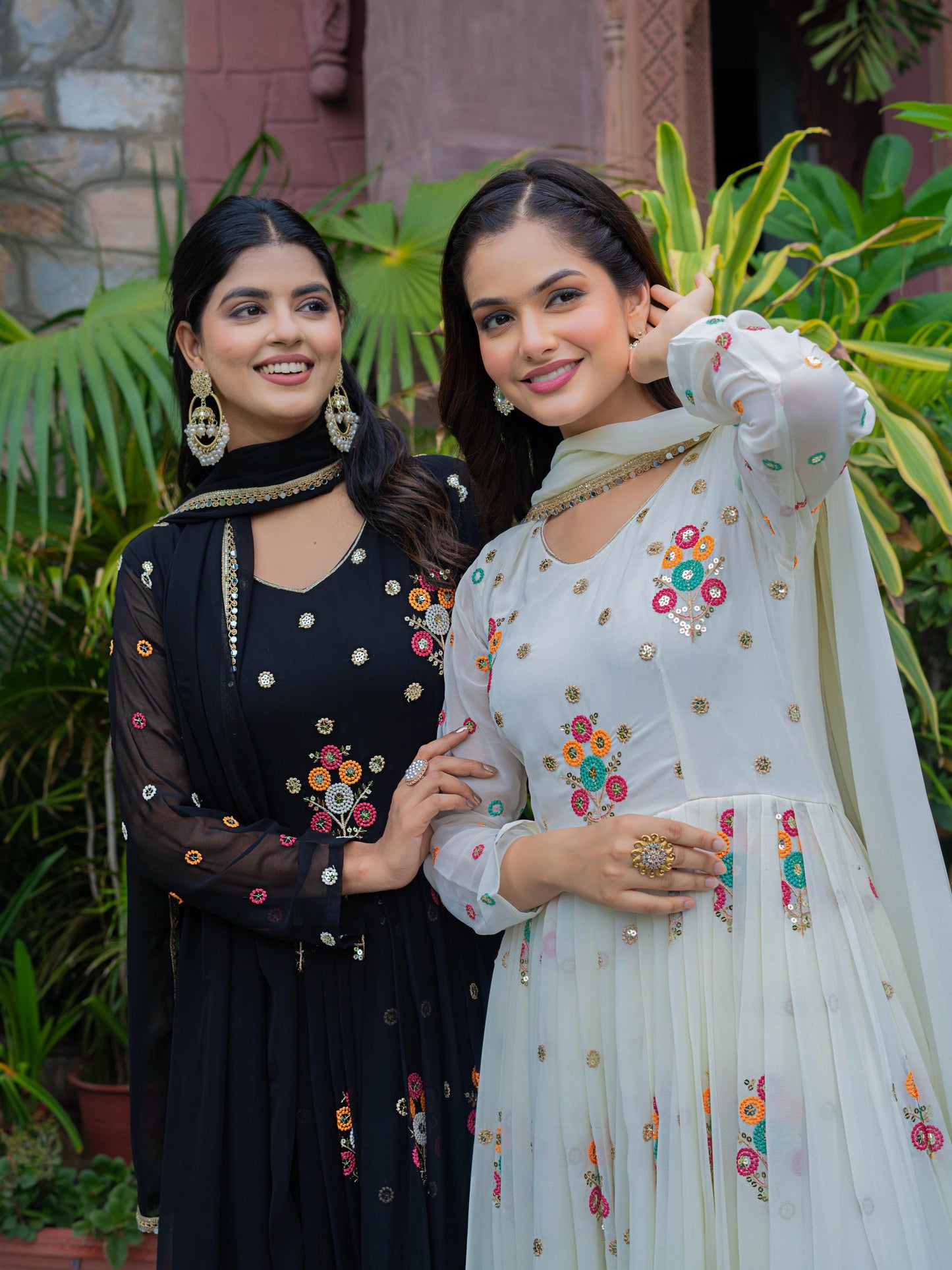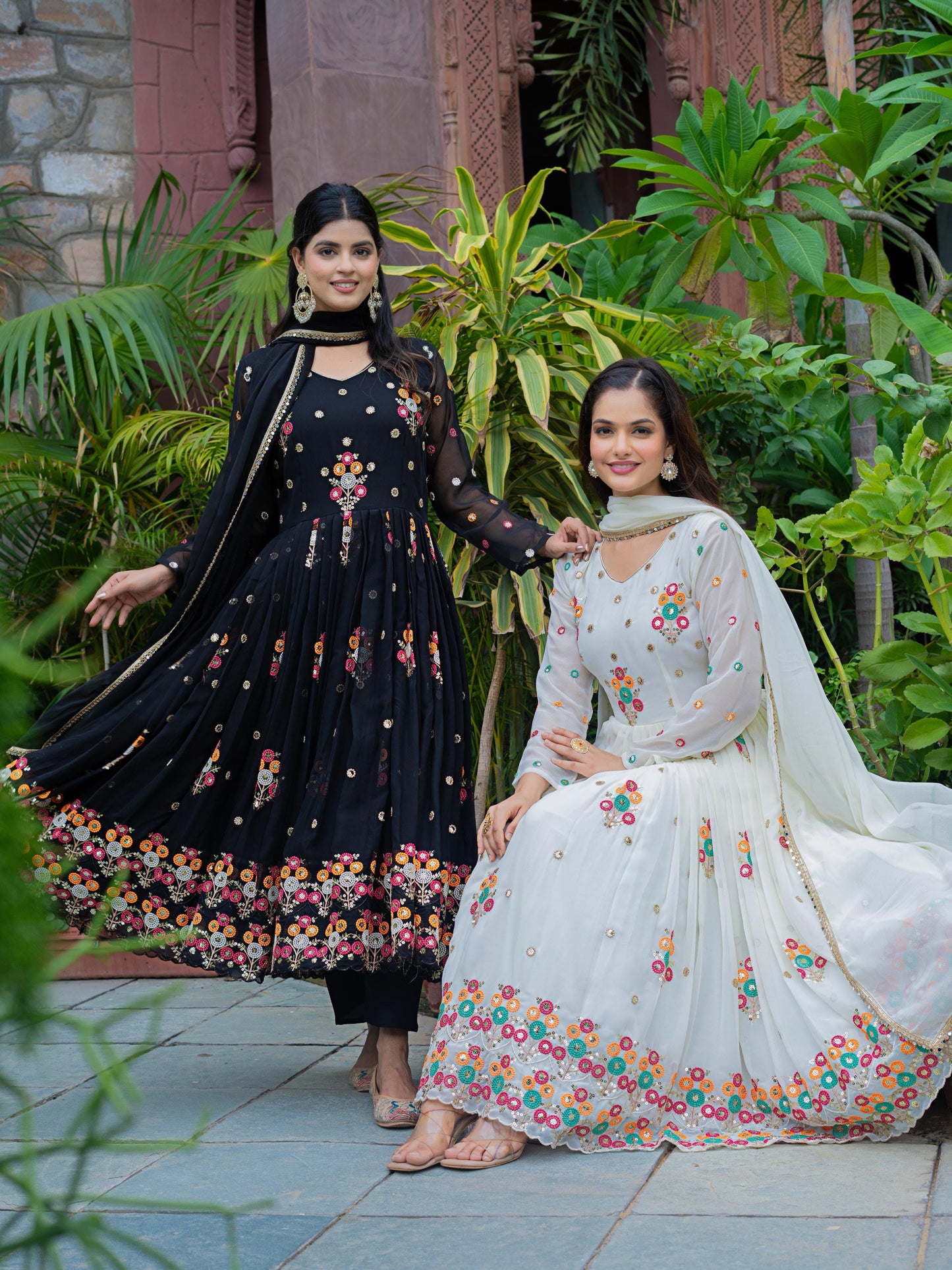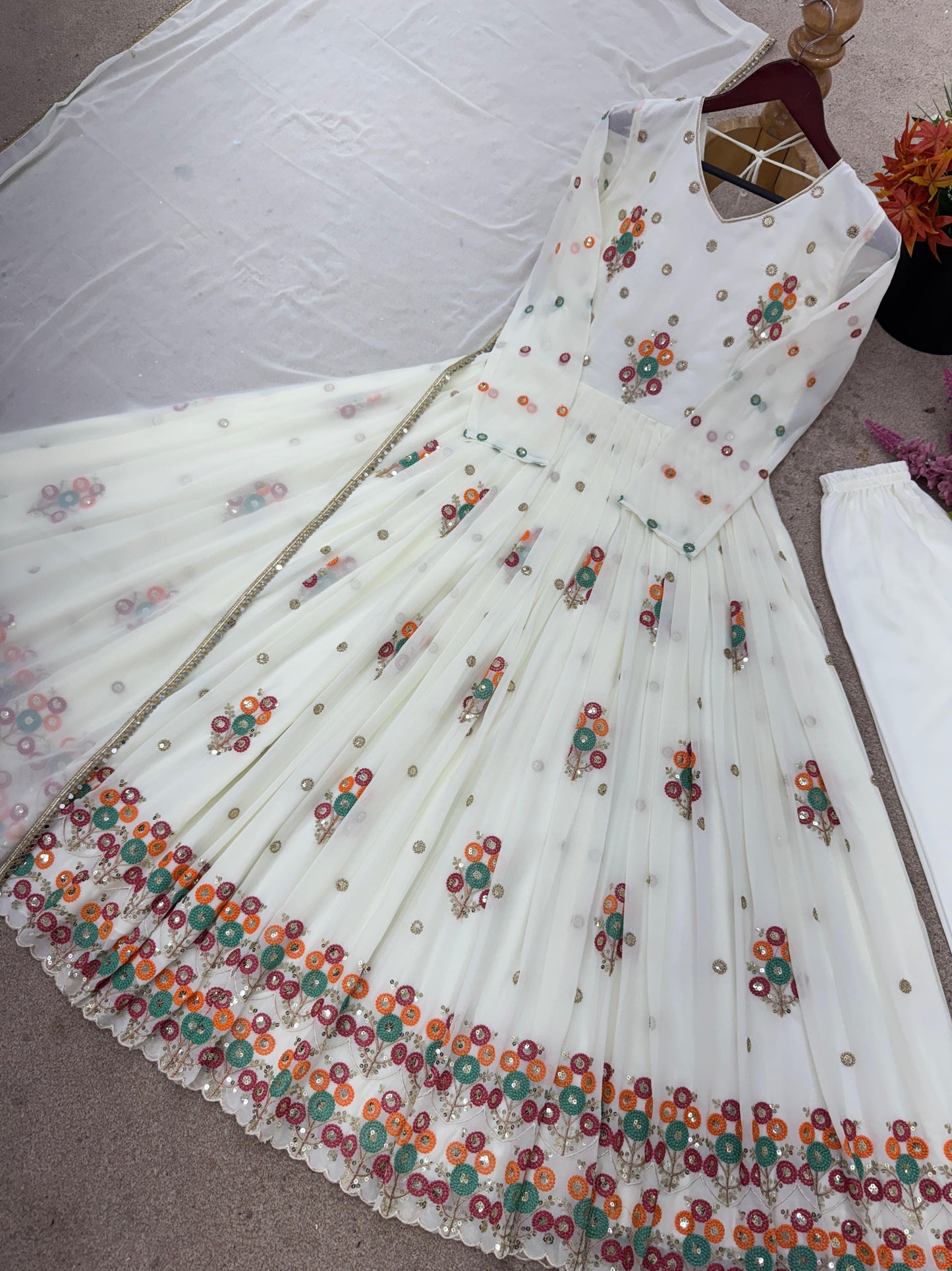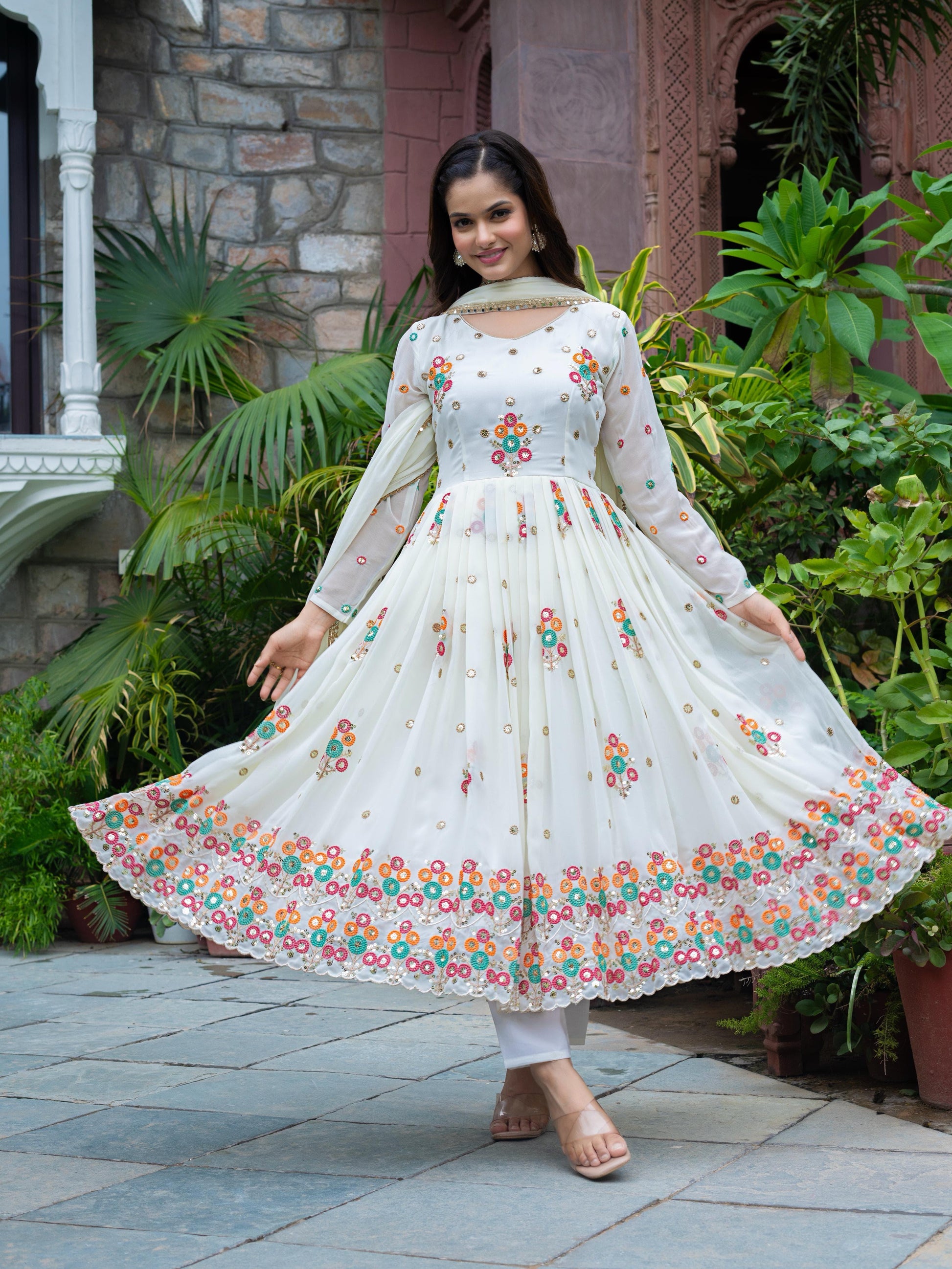 Heavy White Embroidery Designer Indian Gown Set | Ready to Wear