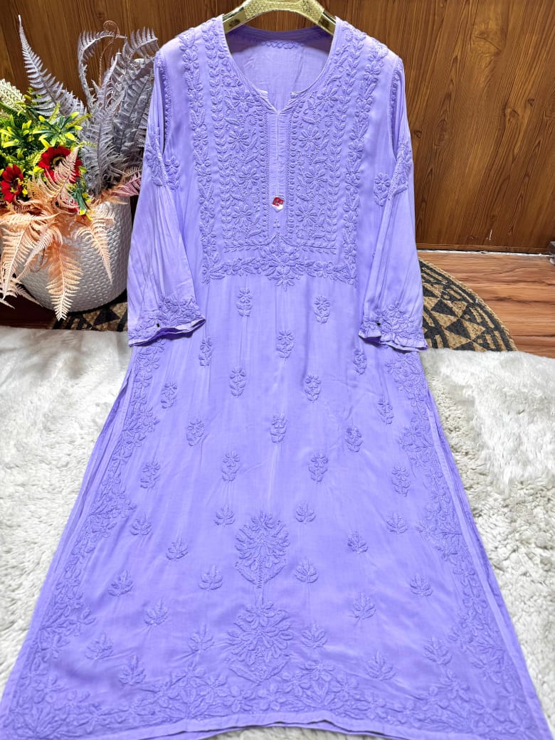 Lavendar Exquisite 3D Handwork Modal Lucknow Chikankari Kurta Set