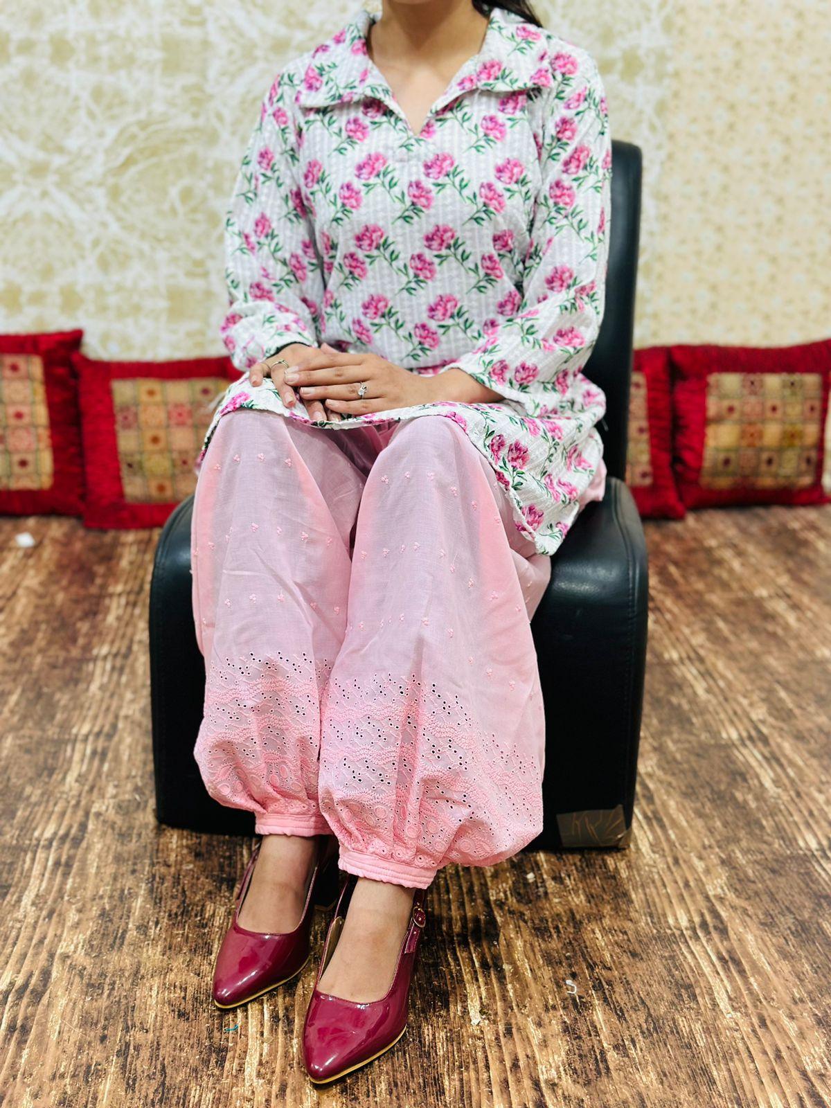 Light Pink Afghani Co -Ord Sets with Authentic Chikan Fabric & Digital Print