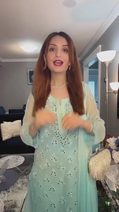 Marina Aqua blue Ombré Georgette Lucknow Chikankari Mirror Sharara Set