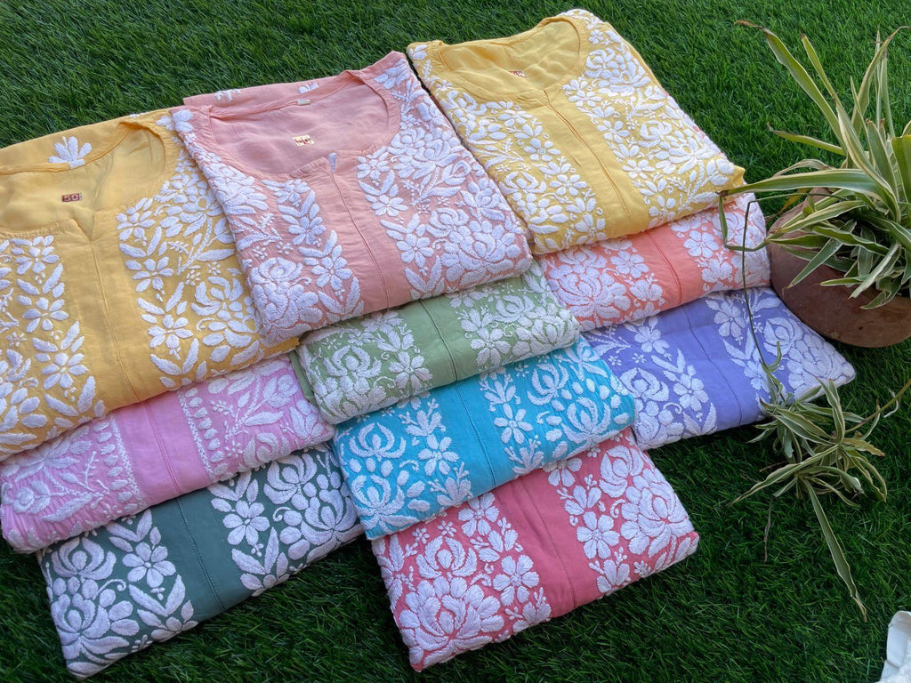 Adorned with intricate mukesh work, the kurti exudes charm and sophistication, adding a touch of glamour to your ensemble. Designed to cater to sizes 40 to 50, it ensures a flattering fit for all body types.