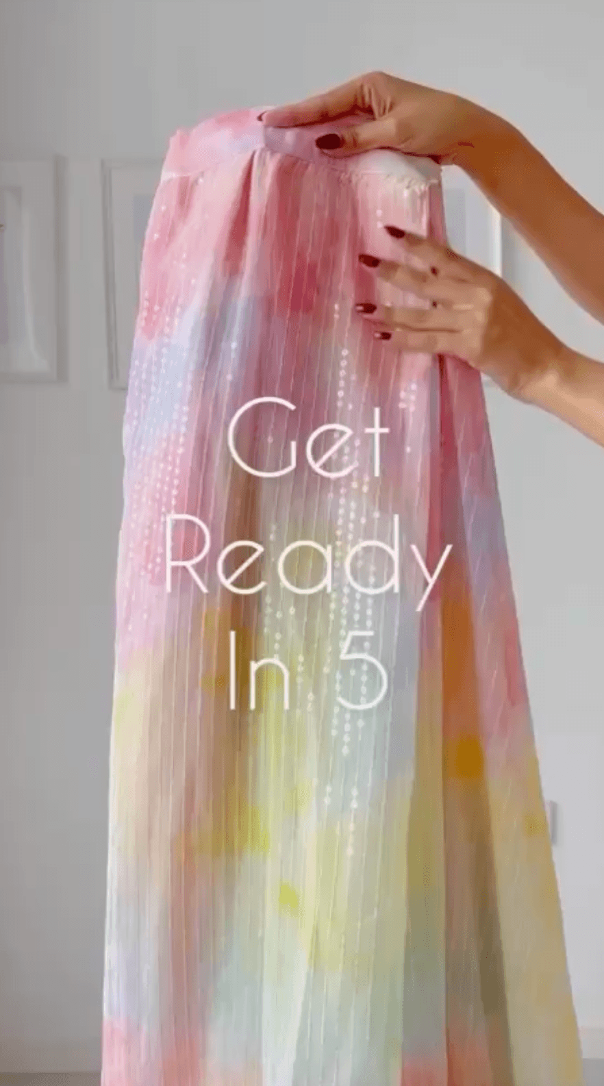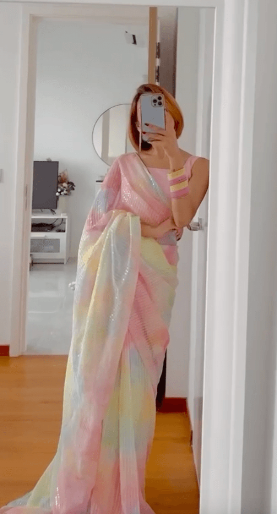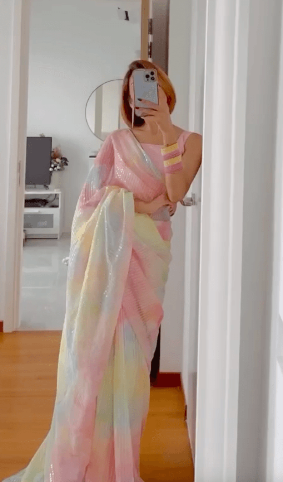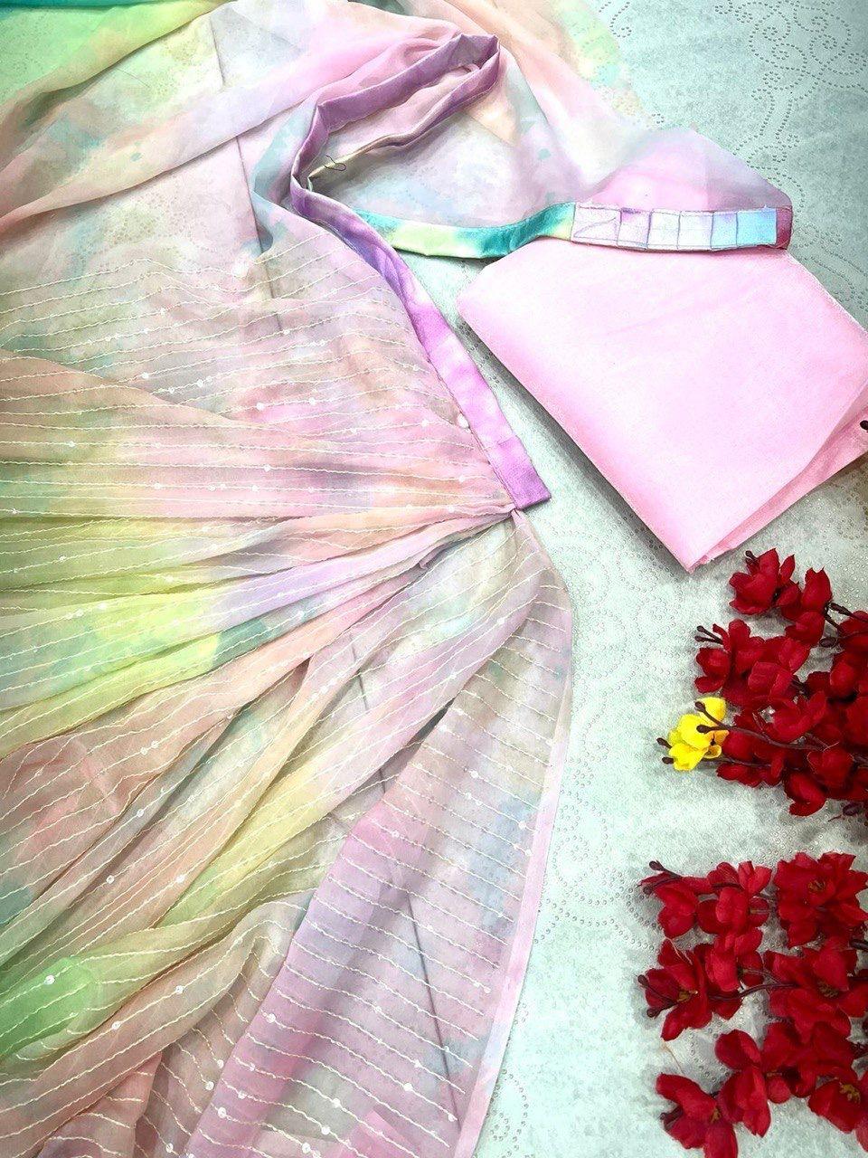 Multicolor Rainbow Celebrity Style Pre-Stitched 1 Min Sequins Saree Set