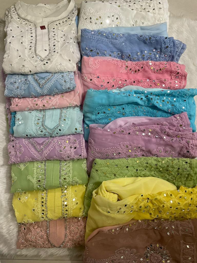 Fabric : Georgette Kurti with Potli Handmade Buttons & Mirror Booti Jaal Ombre*