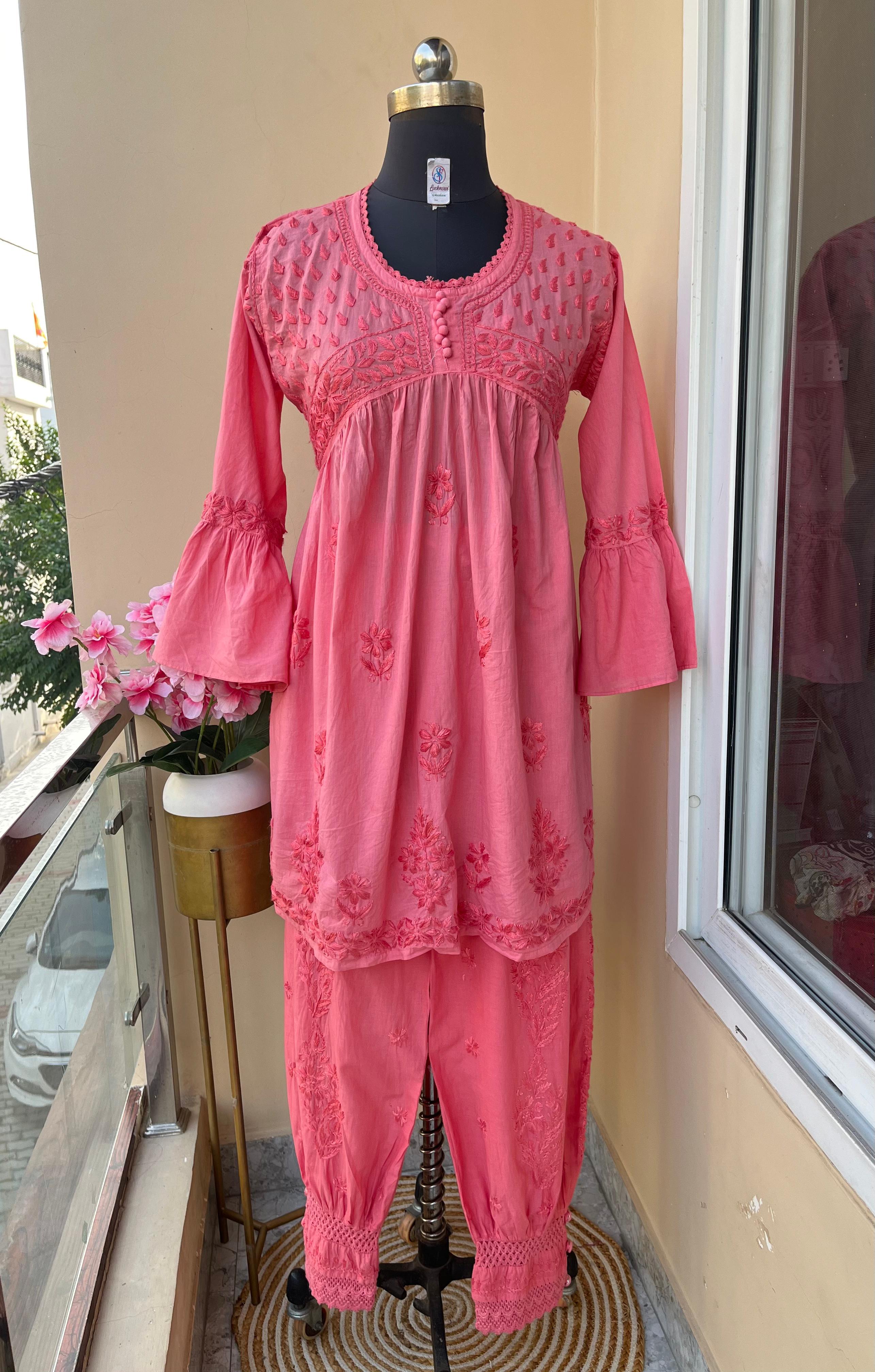 Pink Vibrant Dyeable Mul Mul Cotton Kurti & Afgani Pant Cord Set (Premium Quality)