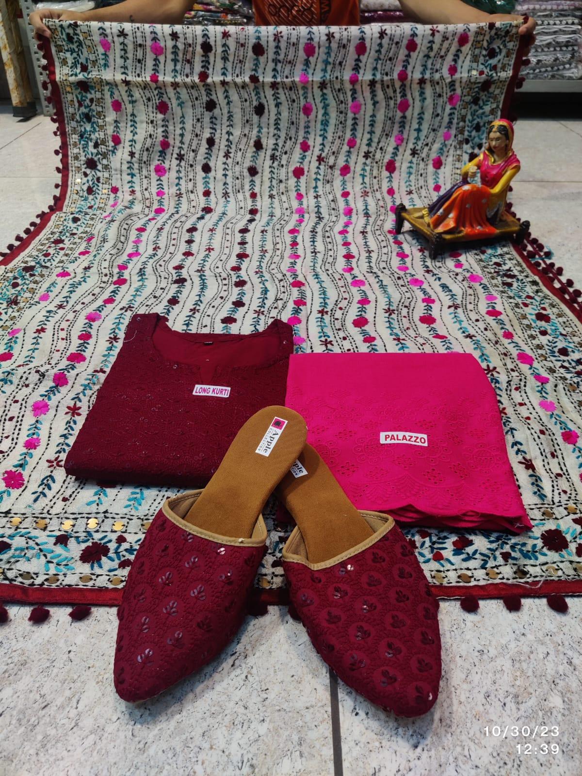 Pure Cotton Chikankari Kurti: The set includes a pure cotton chikankari kurti, adorned with delicate chikan embroidery, a traditional and elegant hand-embroidery technique.