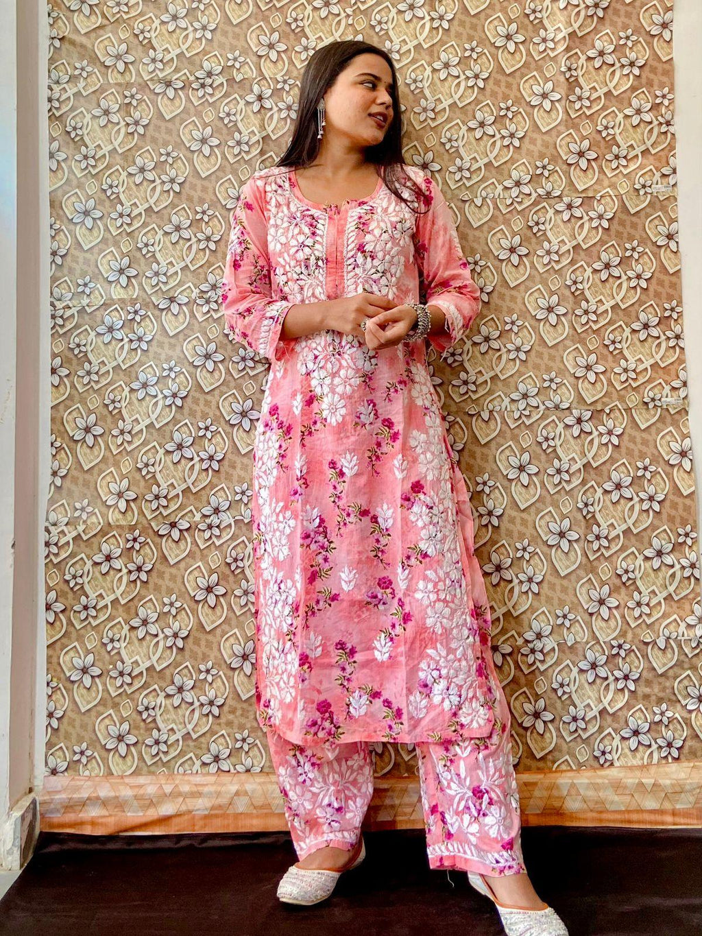 Description: Immerse yourself in the enchanting beauty of our "Enchanting Floral Elegance MulMul Set." This set is a masterpiece of craftsmanship, featuring a delicate floral print on MulMul fabric that exudes grace and sophistication.