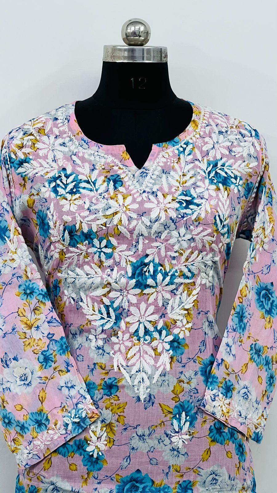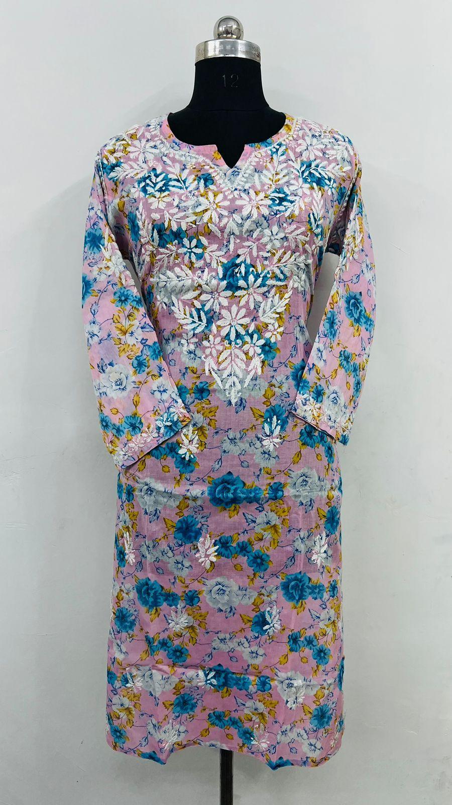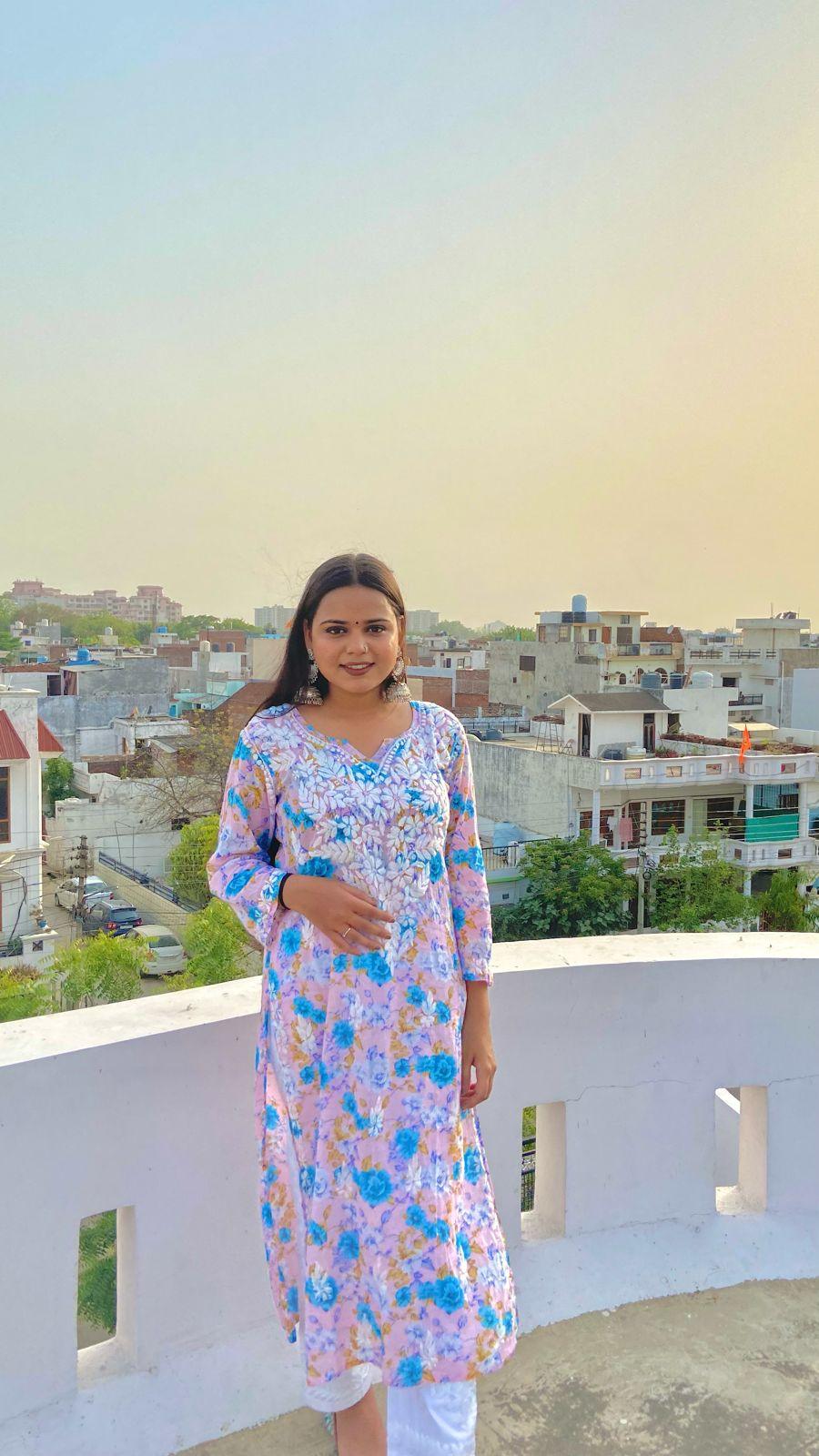 Pink Multicolor Floral Elegance Reimagined Straight Kurta with Chikankari Palazzo Set