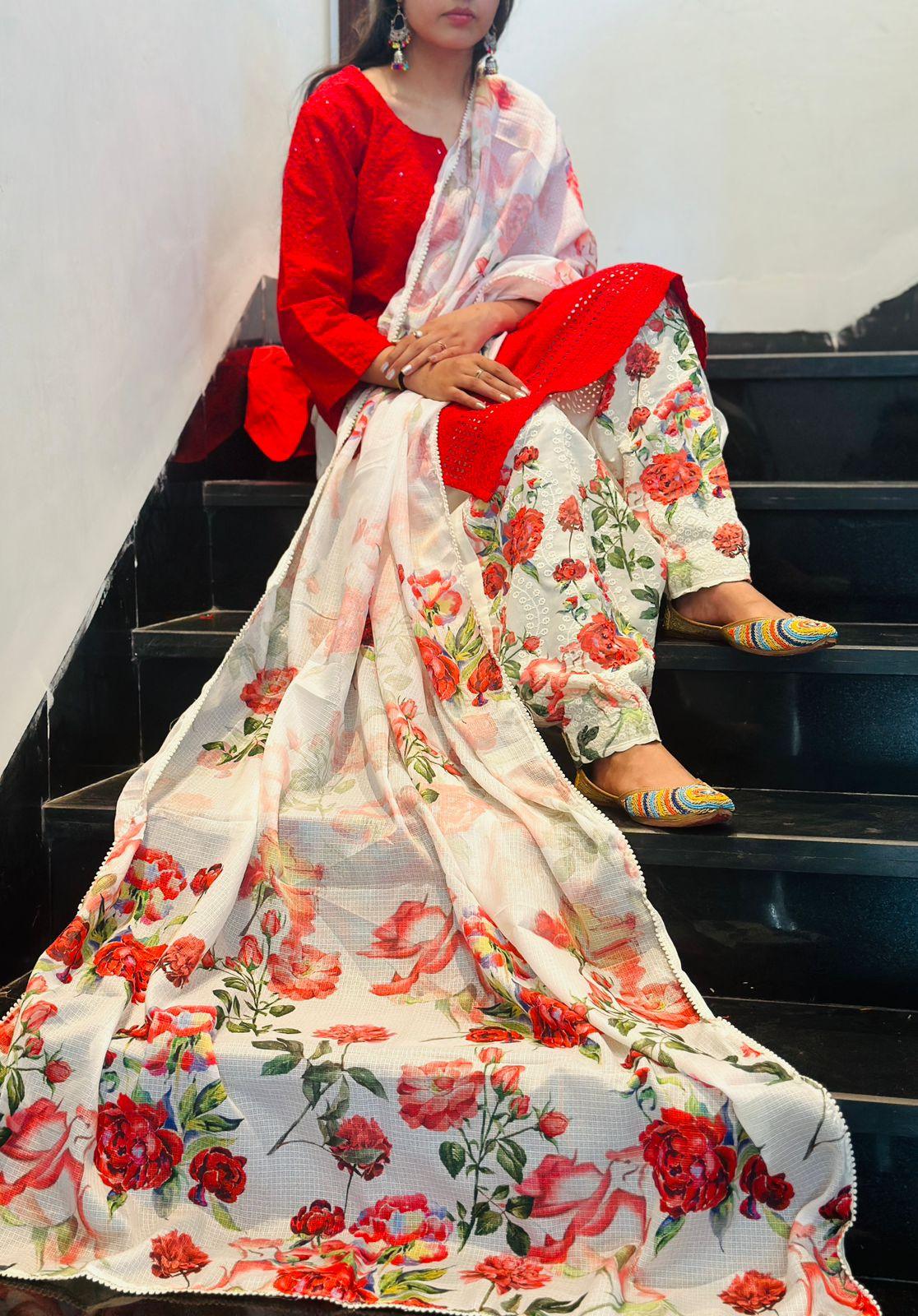 Red Ethereal Elegance Kurta Salwar Dupatta Set