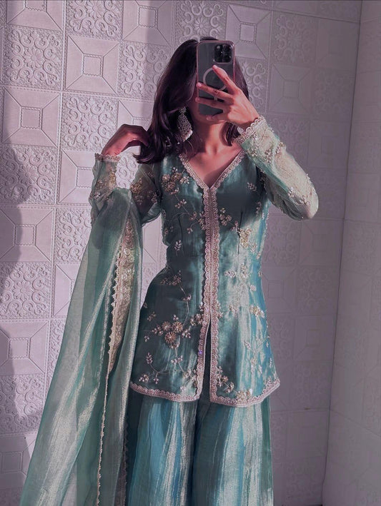 Perfect for festivals, weddings, and celebrations, this handcrafted masterpiece reflects the rich heritage of Lucknowi Chikankari embroidery. Order now and embrace timeless elegance..