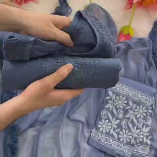 This exquisite 3-piece set includes a kameez (top), salwar (bottom), and a chiffon dupatta, all meticulously crafted from exclusive dobby cotton fabric. The tone-to-tone dyeable material allows you to personalize your outfit as per your preference.