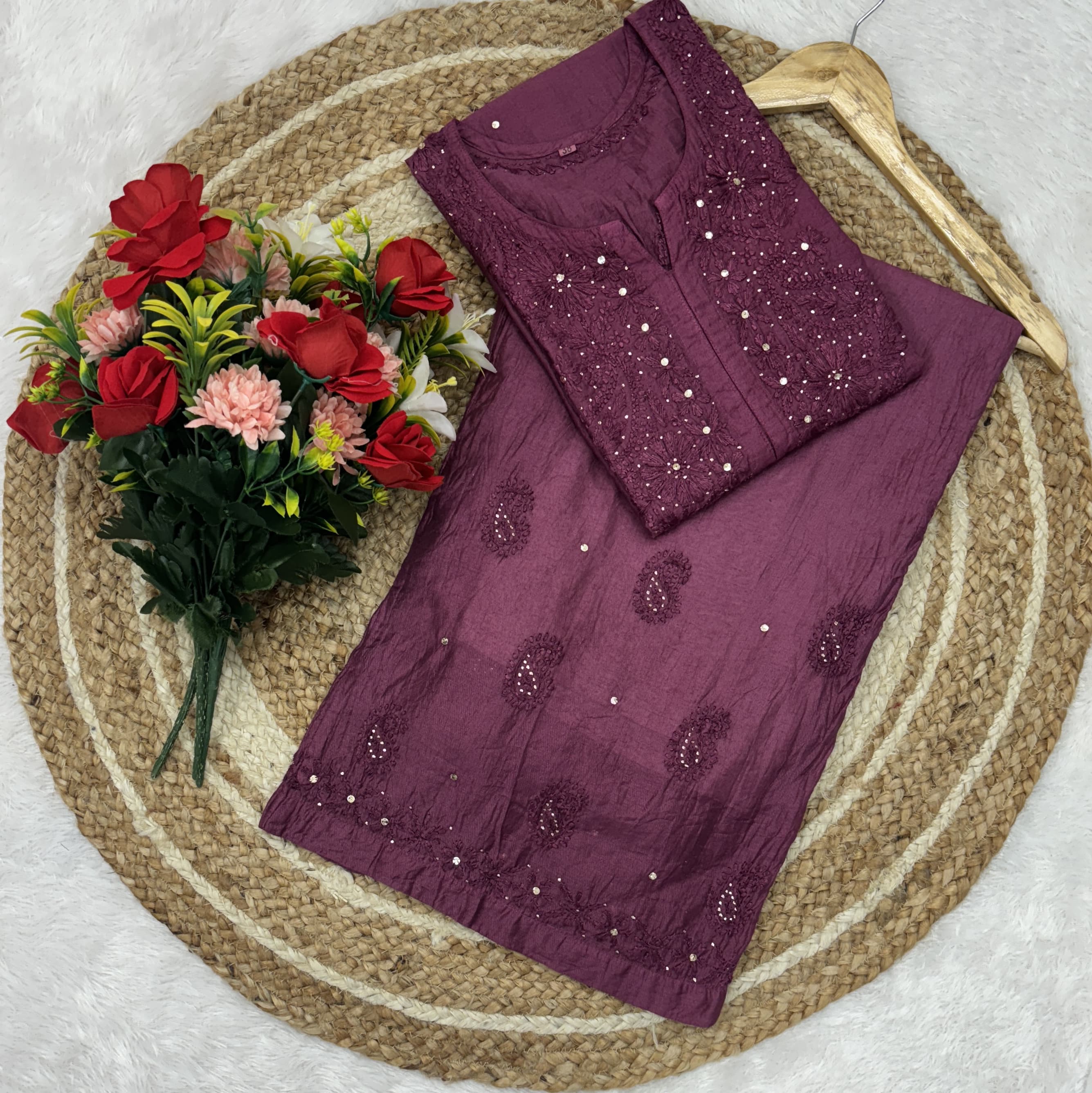 Add a touch of tradition and elegance to your collection with this handcrafted Chanderi Chikankari set, perfect for any occasion..