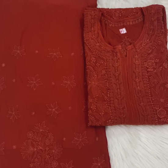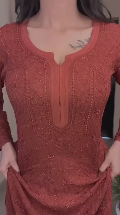 Brick Red Chikankari Resham Work Viscose 3-Piece Set