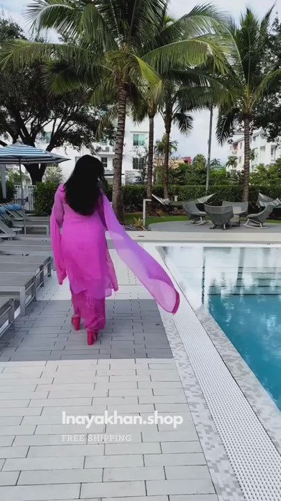 Bright Pink Chikankari Elegance Ombré Mirror Booti Jaal Set - Kurti, Sharara & Dupatta -(Inner Included)