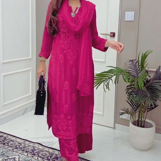 Deep Pink Ethereal Dyeable Modal Chikankari Kurta Set (New)