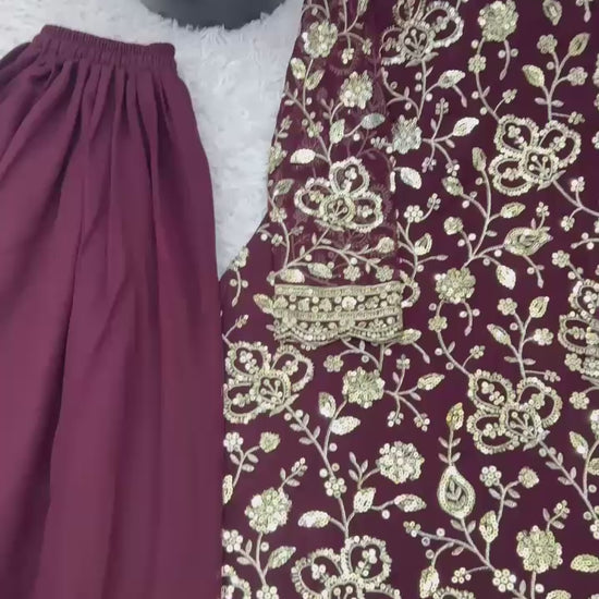 Step into the spotlight with our New Designer Party Wear Look Salwar Suit Set! This stunning ensemble features a heavy faux georgette top, a gracefully flared plazzo, and a matching dupatta, all adorned with intricate 5mm embroidery sequence work. Fully stitched and ready to wear, itβs designed to make you shine at any celebration.