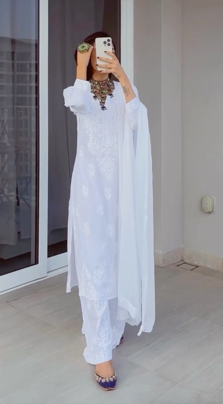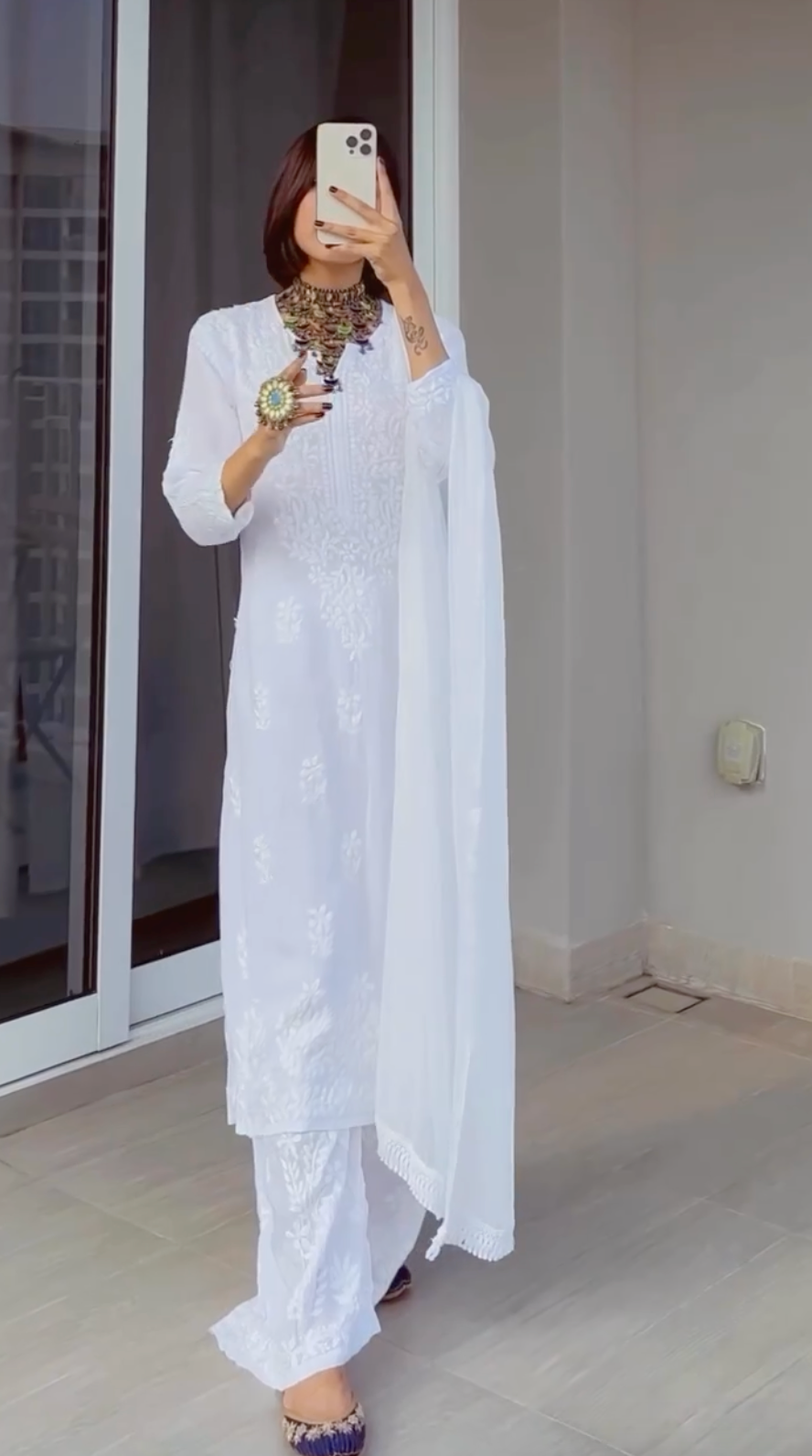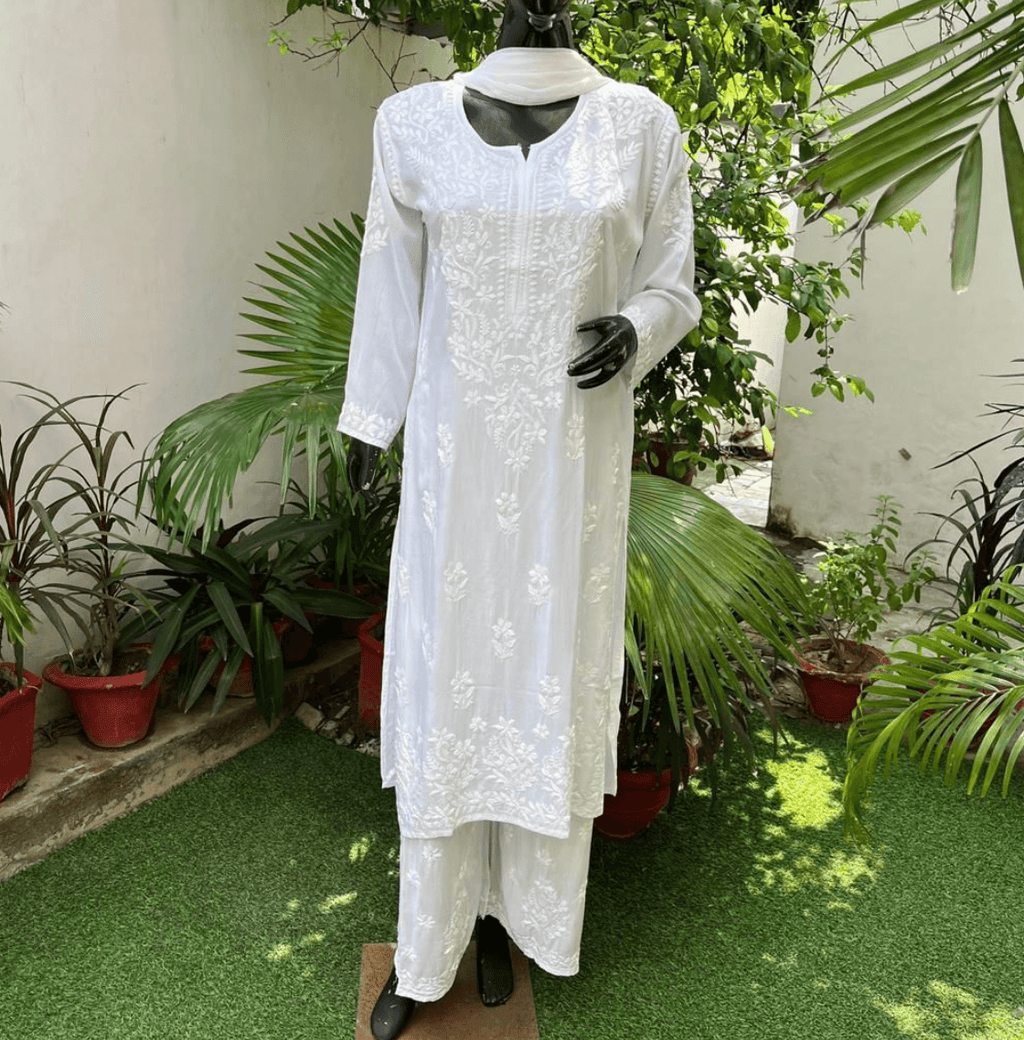 Elegant 3 pc White Ethereal Dyeble Modal Chikankari Kurta Set up to 5XL