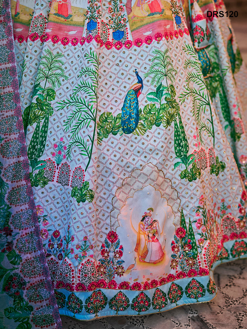 💙 Lehenga Fabric: Premium Silk with Multi-Color Floral Print & Handwork