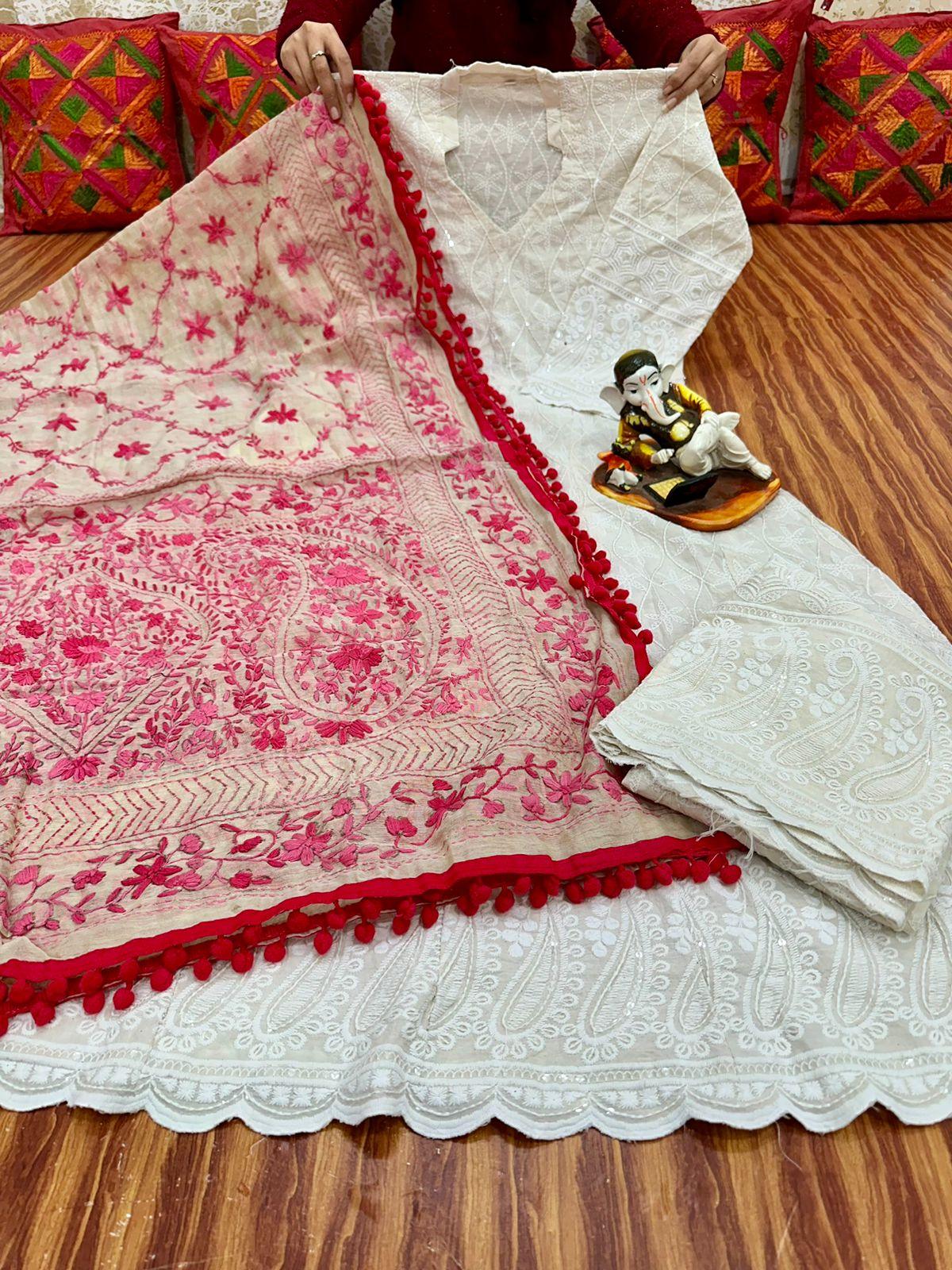 The "Ethereal Elegance" is more than just an outfit; it's a testament to the beauty of fusion where traditional Chikankari embroidery meets modern design elements. It’s a must-have for those who cherish sophistication with a touch of modernity in their wardrobe.