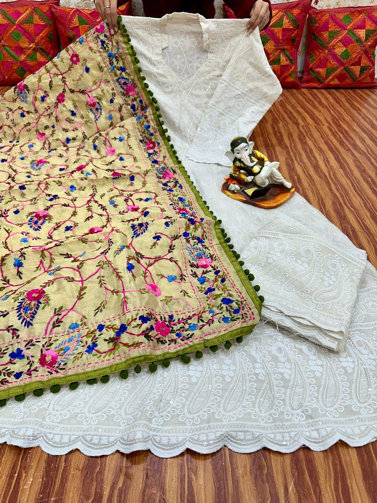 Ethereal Elegance - 7 : Sequined White Chikankari Cutwork Anarkali with phulkari Dupatta