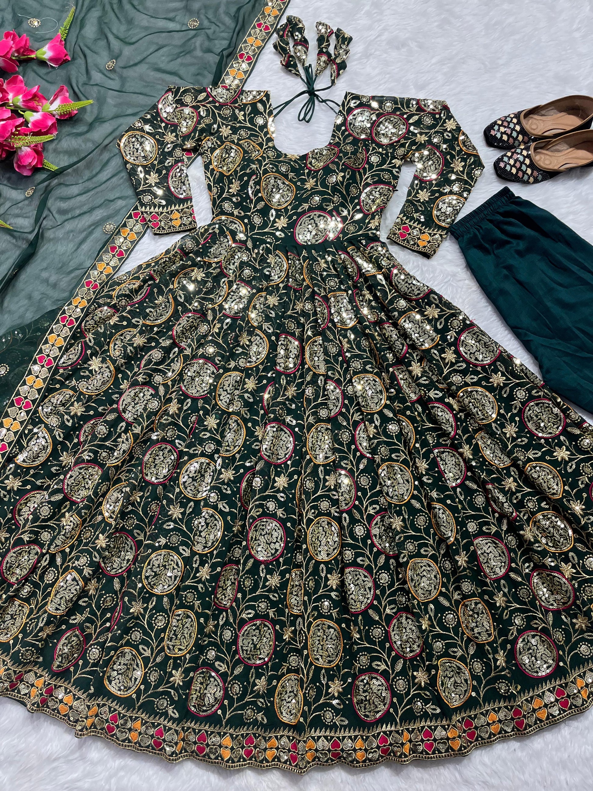 Green Designer Georgette Sequin Embroidery Anarkali Suit Set