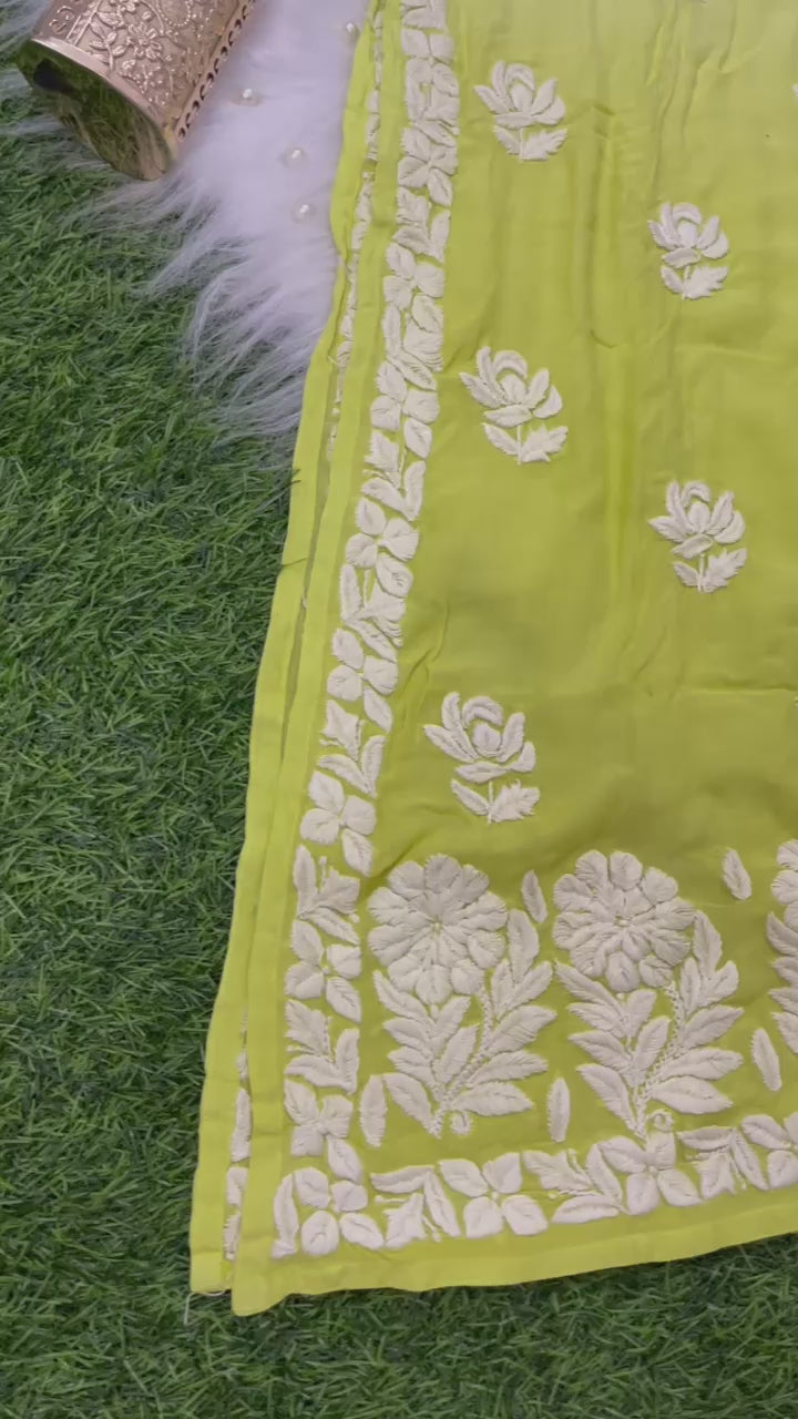 Green Elegance in Motion 3D Quraishiya Button Pure Muslin Kurti Set