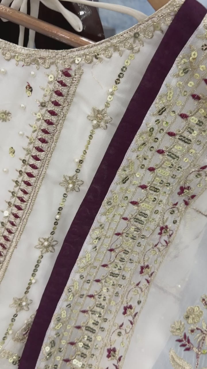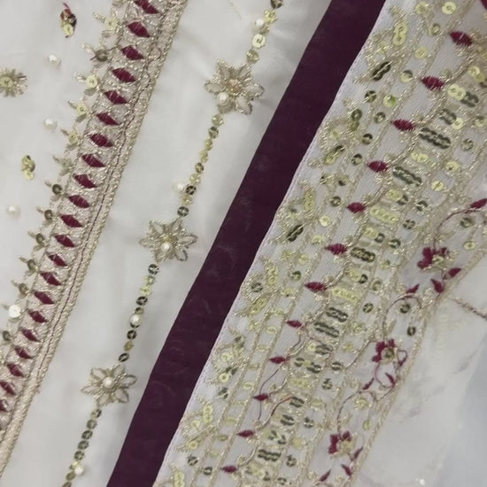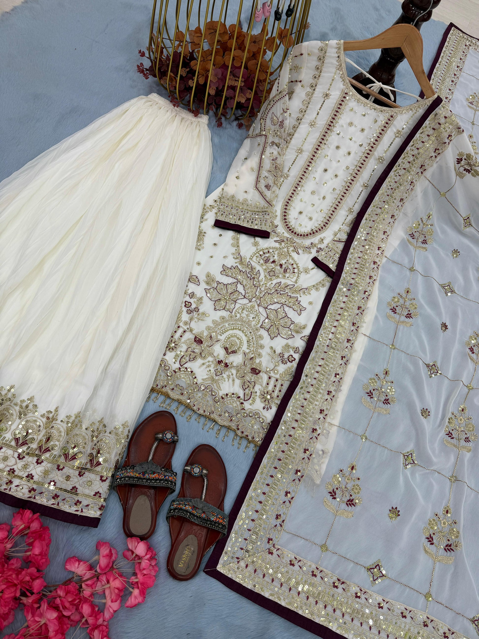 Ivory Designer Party Wear Heavy Faux Georgette Top, Palazzo Dupatta Set