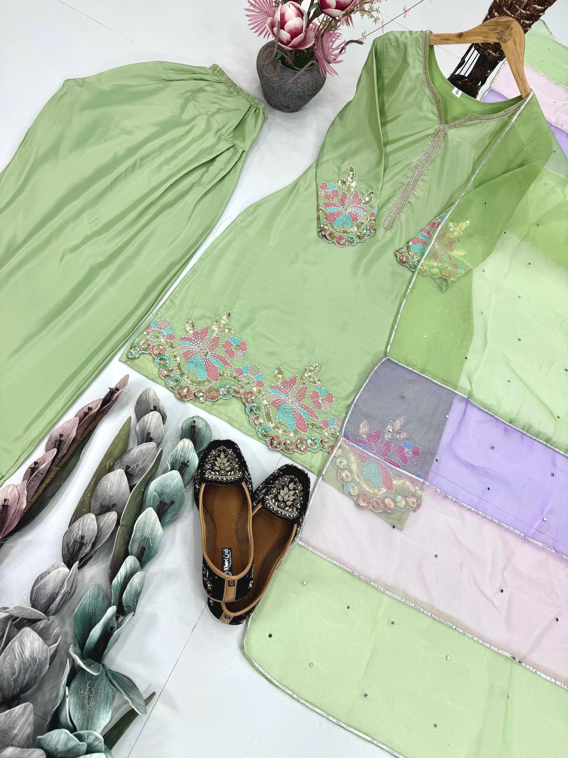 Light Green Designer Crepe Embroidered Farshi Salwar Suit Set