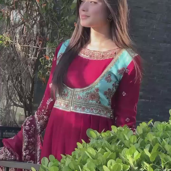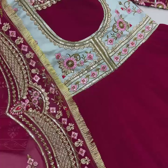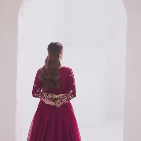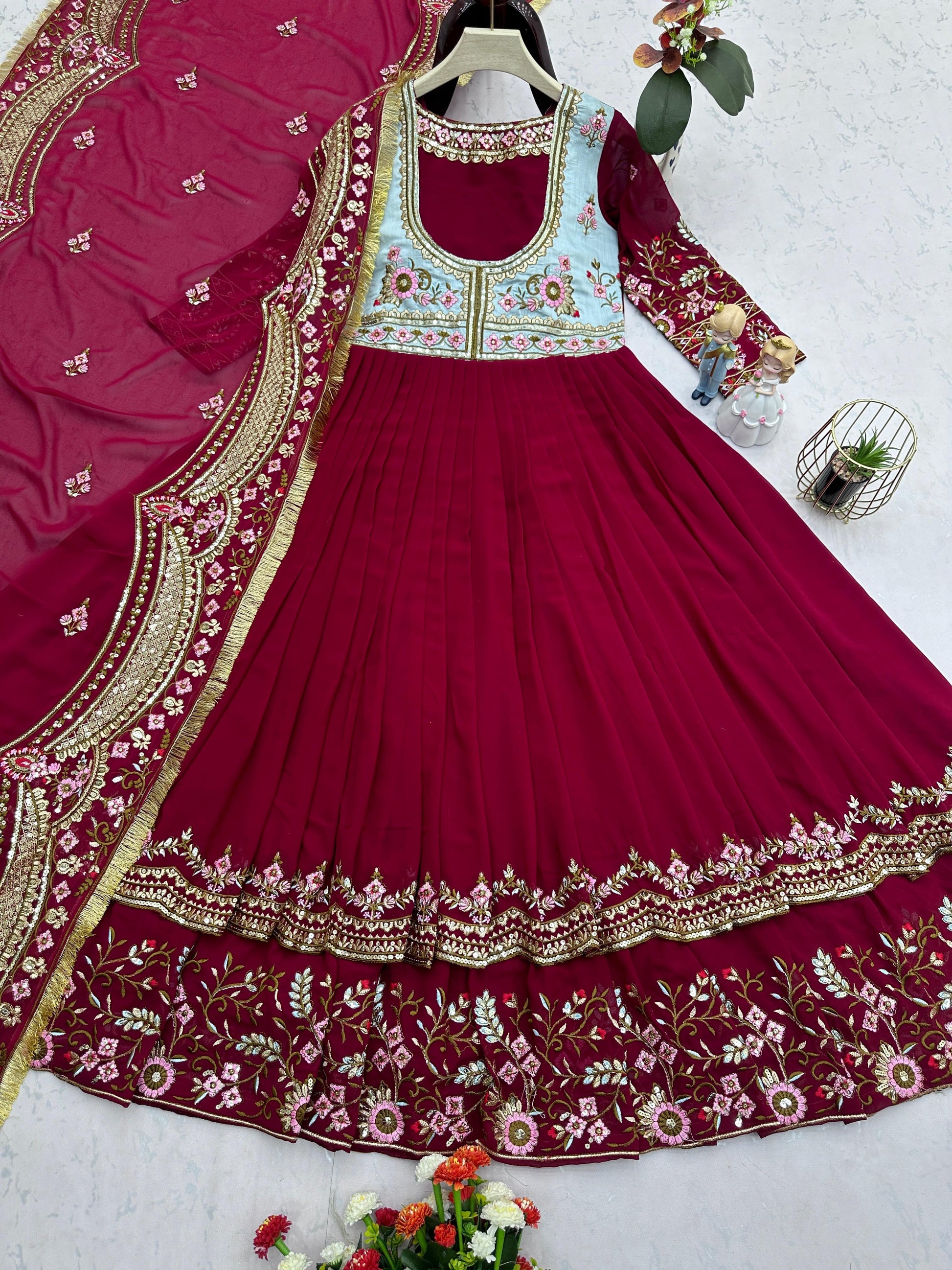 Maroon Designer Georgette Sequin Embroidered Gown with Dupatta (Double Layer Flair)