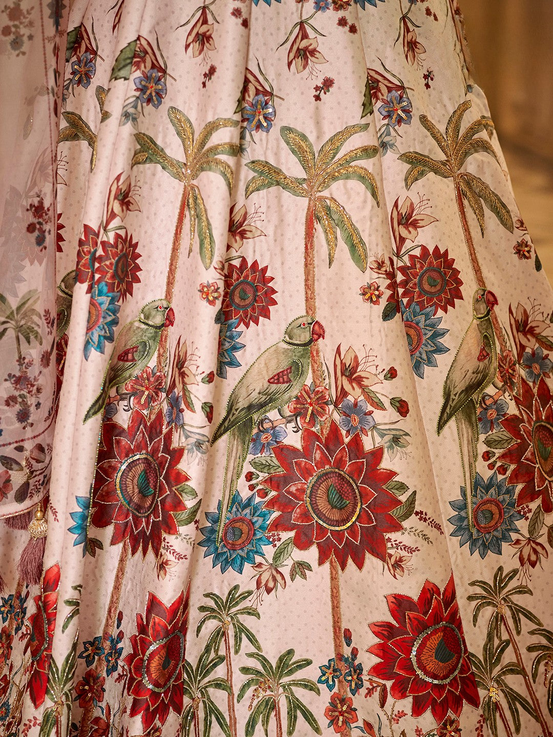 🤍 Lehenga Fabric: Premium Silk with Multi-Color Floral Print & Handwork