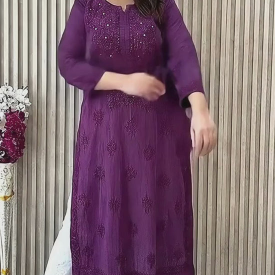 Purple Exquisite Lucknow Chikankari Mukesh Work Kurti Set