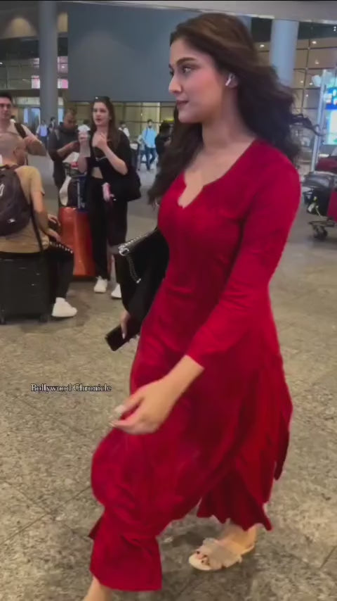 Red Plus Size Lucknow Chikankari Kurti Palazzo Set