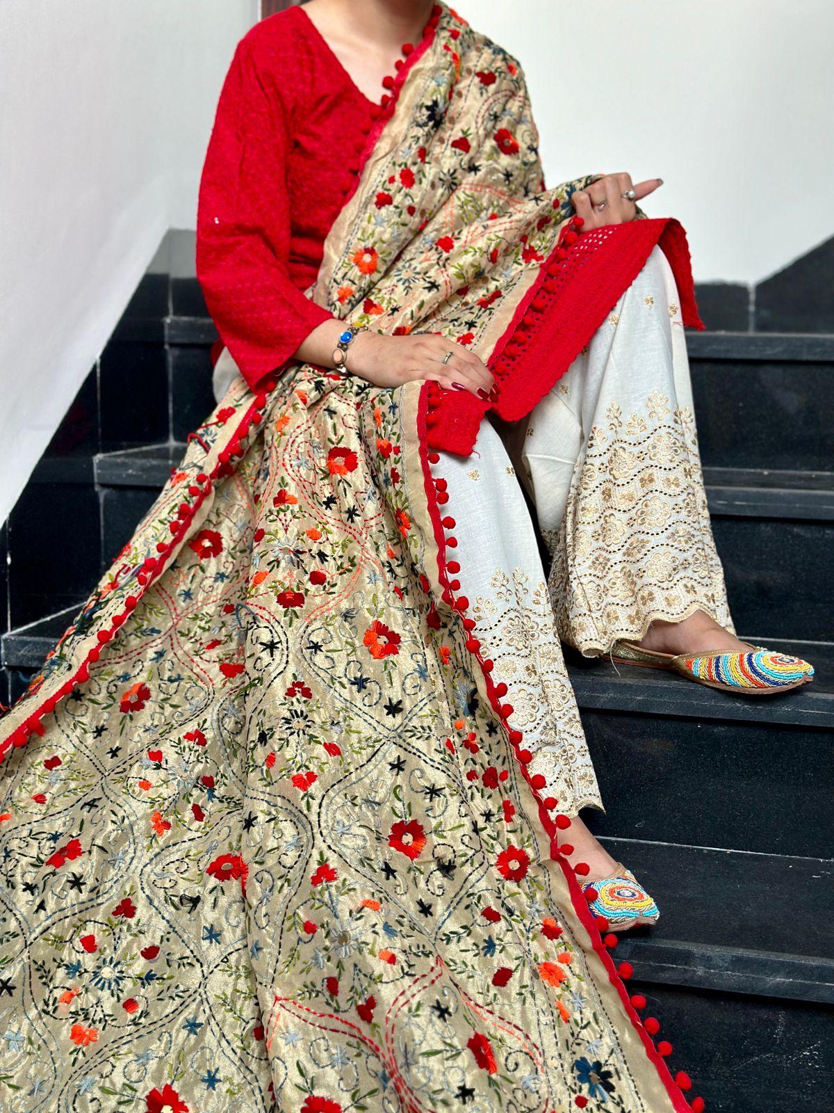 Wrap yourself in sophistication and elevate your style with the Pom Pom Panache Kurti Dupatta Set, perfect for any occasion.