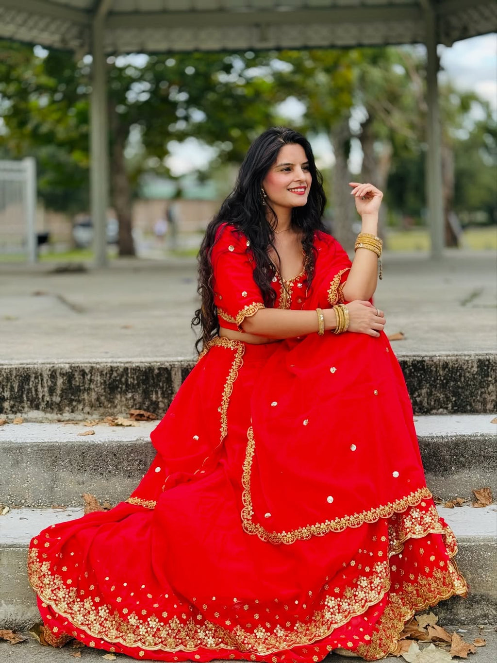 Red Ready-to-Wear Double Layer Lehenga Choli for Women