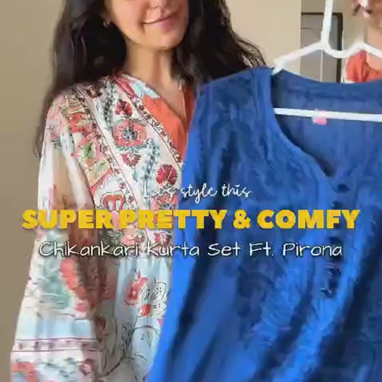 Royal Blue Cotton Chikankari Hand Work Kurta Pant Suits