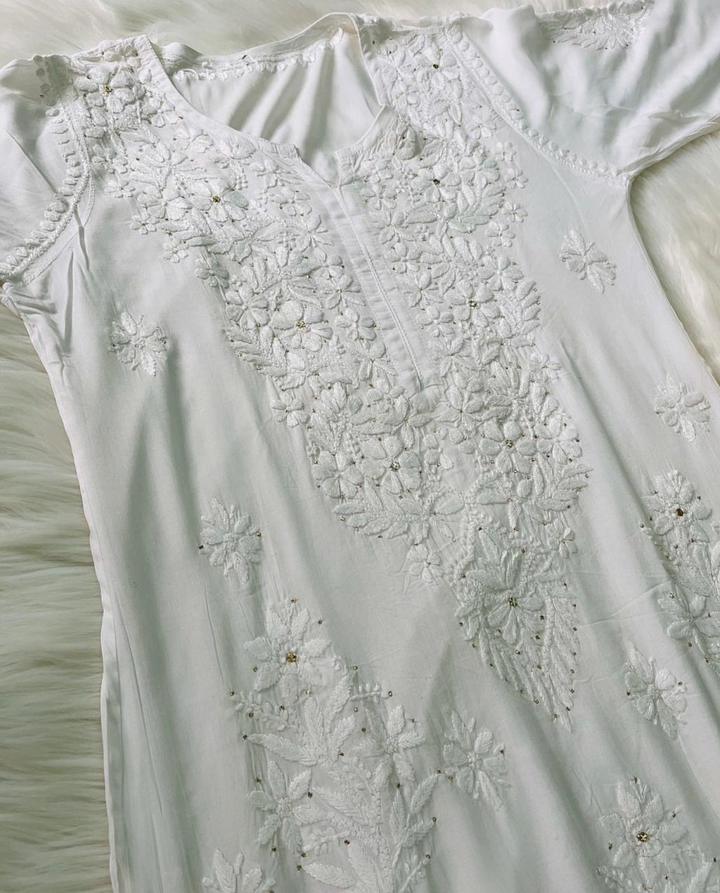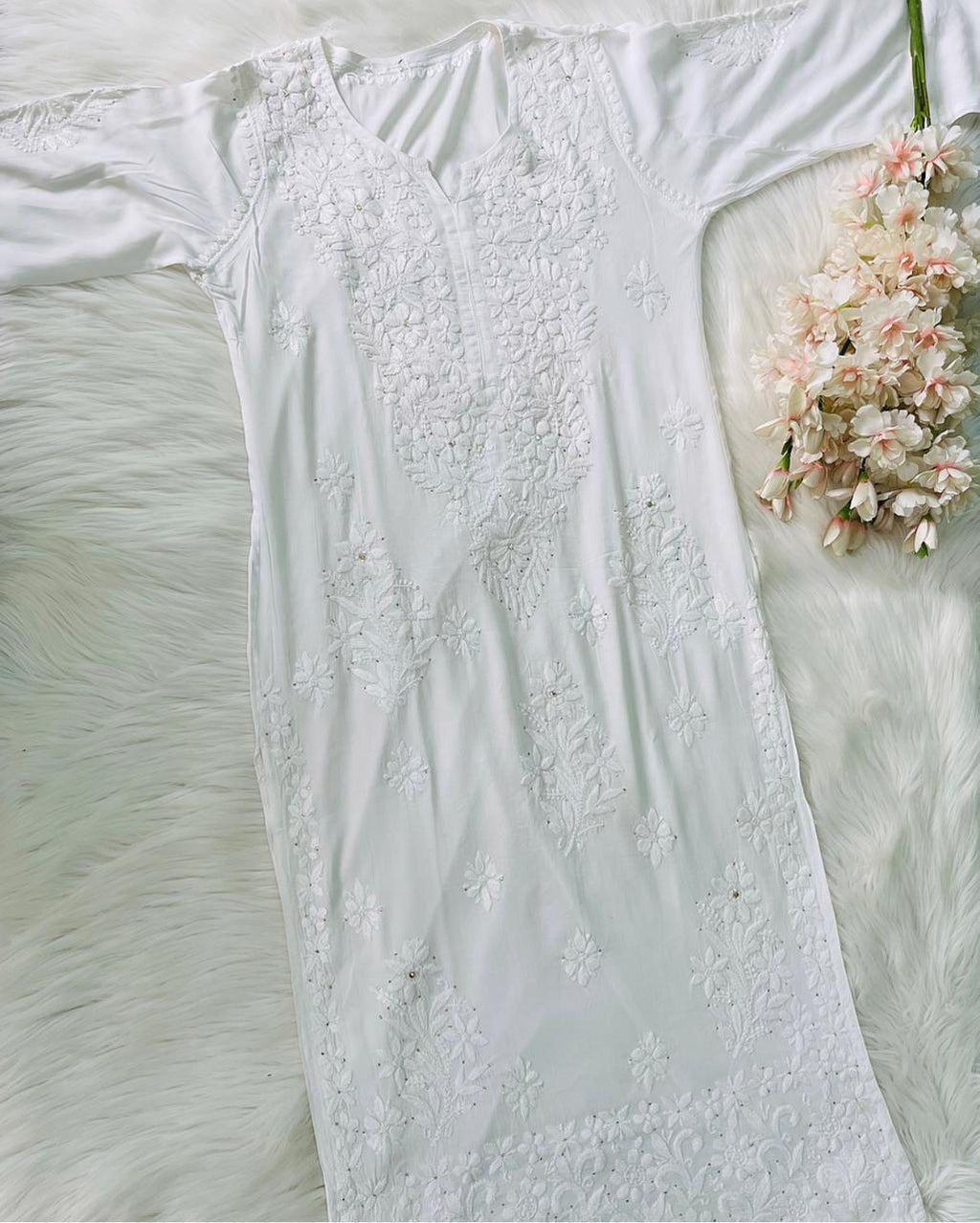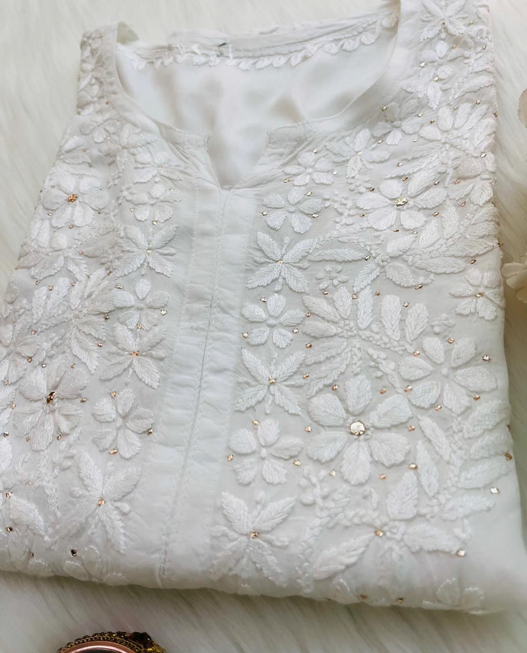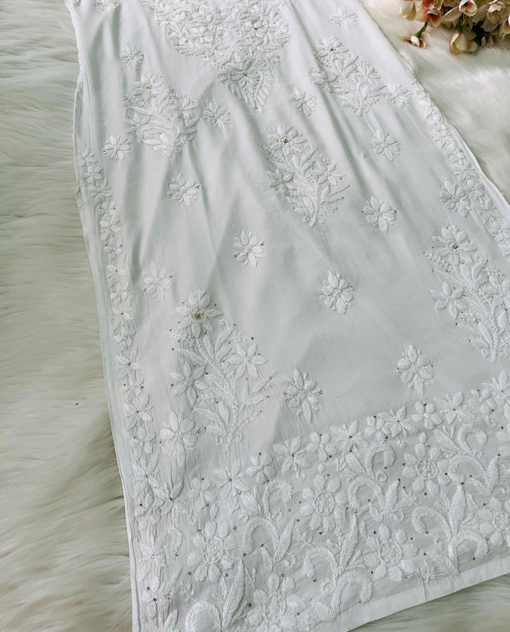 Indulge in the sheer luxury of our Sparkling White Modal Mukaish Ensemble! This premium set combines the softness of modal fabric with exquisite Mukaish detailing, ensuring both style and comfort. Ideal for a variety of occasions, from casual outings to special events, this ensemble promises to make you stand out with its timeless elegance.